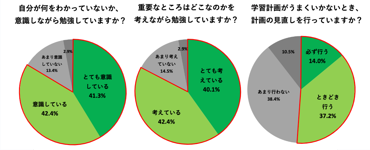 「自分が何をわかっていないか、意識しながら勉強していますか?」という質問に対して、83.7%が「とても意識している」「意識している」と回答