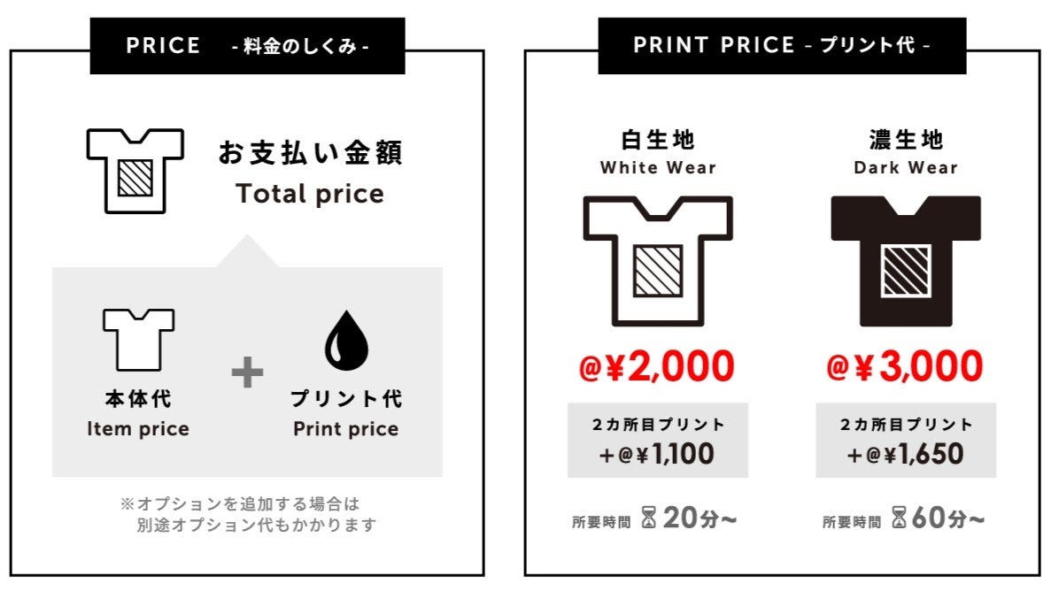 実際に製作過程を体験していただけるワークショップの他にも、Tシャツ・トートバッグの「即日プリントサービス」を通常価格の35〜50%引きの特別価格でご提供いたします。(※1)