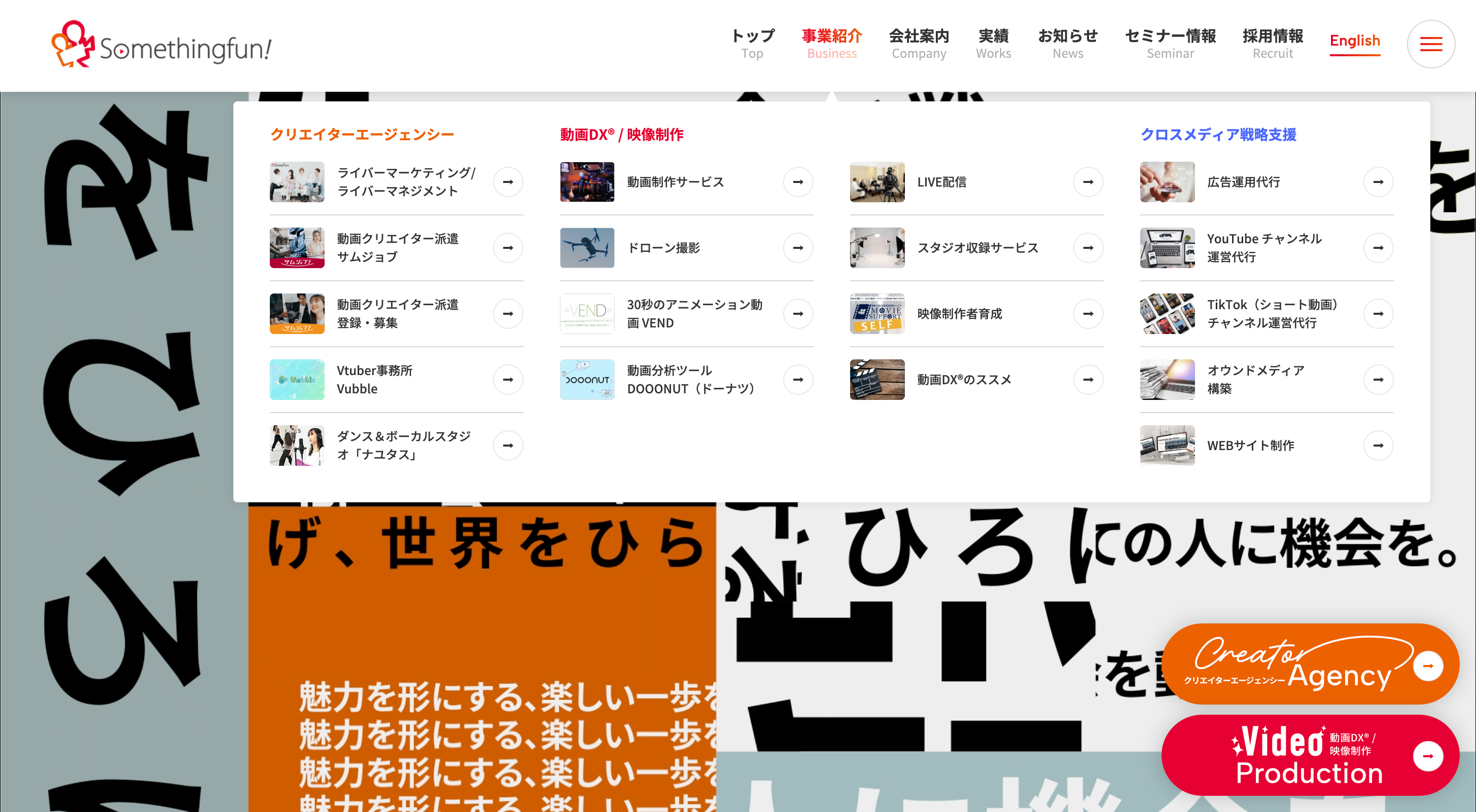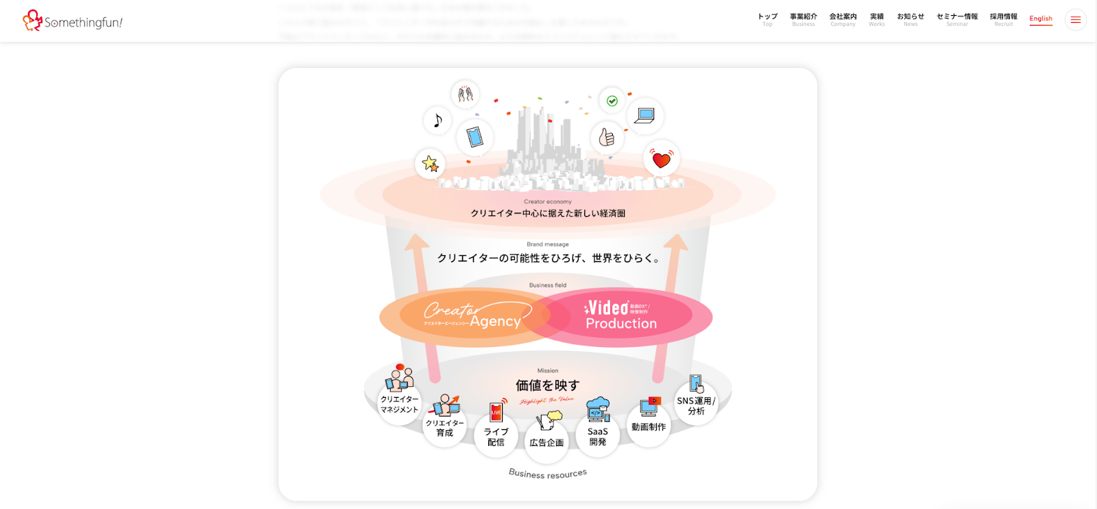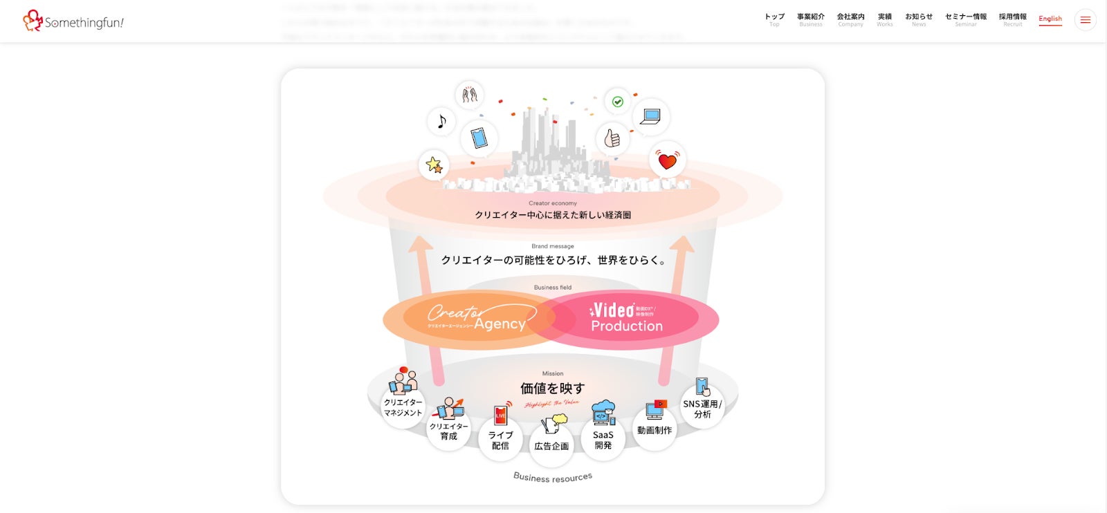 株式会社サムシングファンは企業のブランド価値向上とビジネス成長をサポートするため動画DX事業を中心に多角的なサービスを展開しています。
