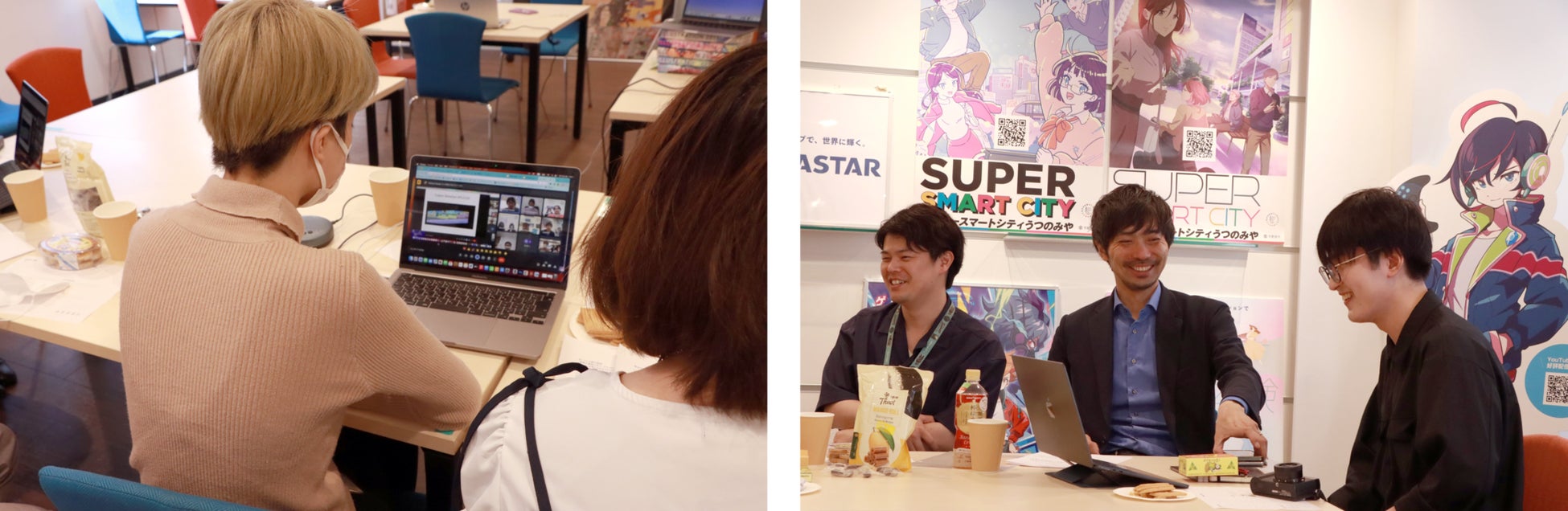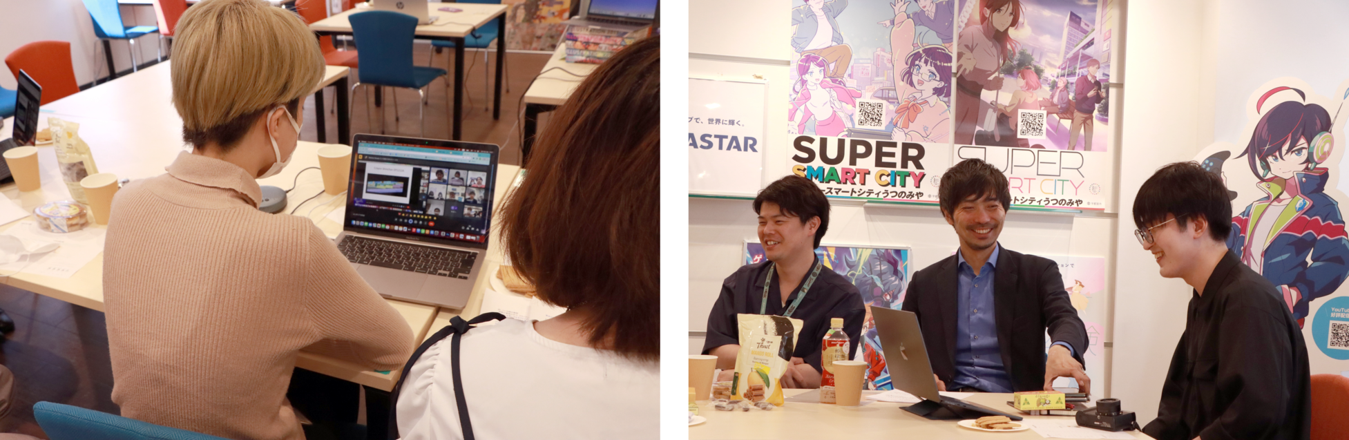 ※会議室から中継を行うアクアスターのスタッフとYAAのスタッフ