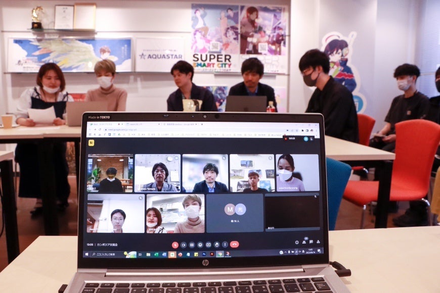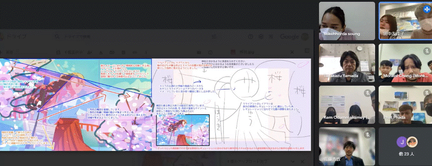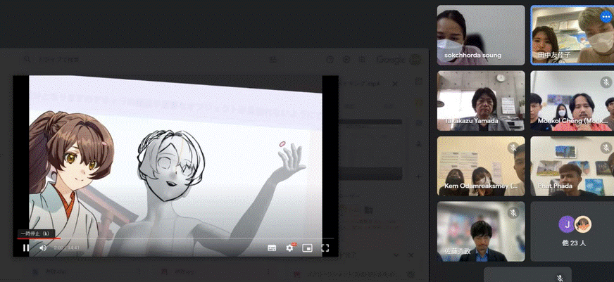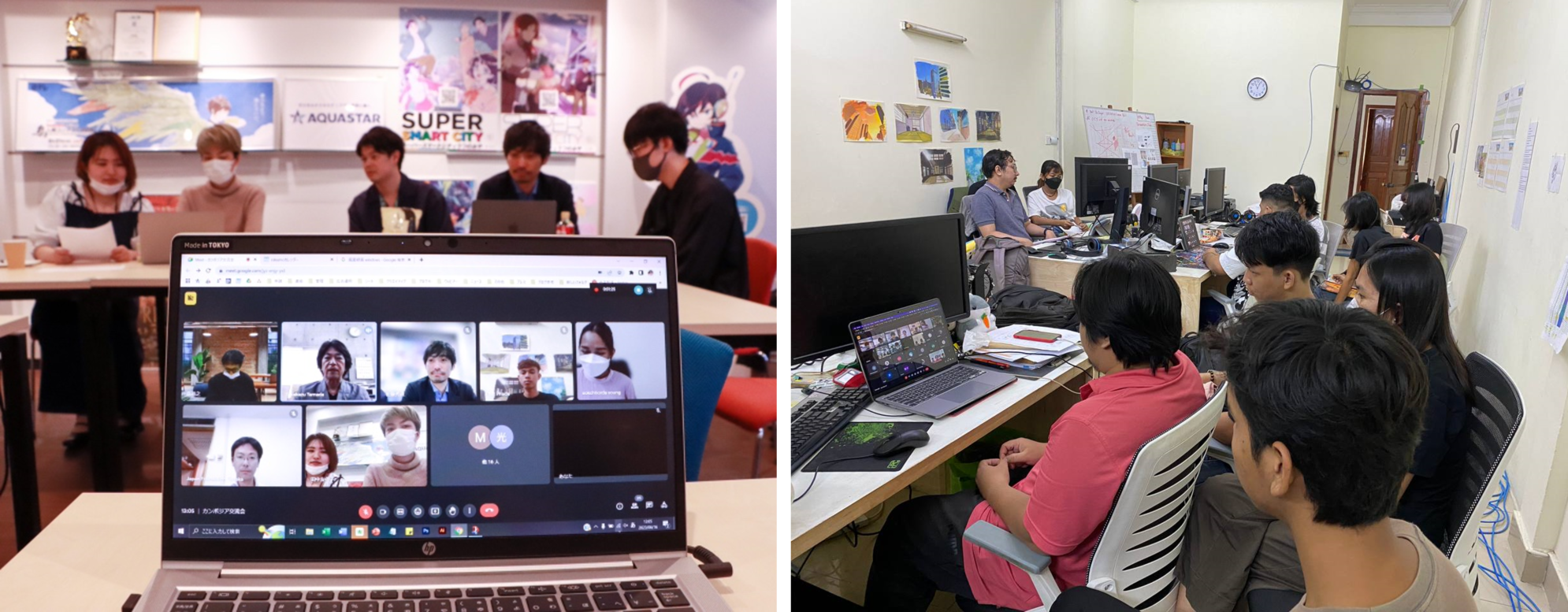 当日は、アクアスターより制作スタッフ25名、YAAの制作スタッフ14名が参加。オンラインによるイラスト制作の技術向上に関するノウハウ・カンボジアの文化について報交換しました。