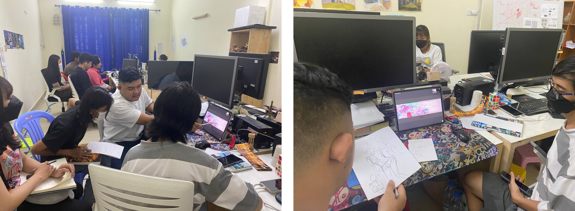 カンボジアのイラストレーター技術力は現在成長過程の段階であり、アクアスターは現地のイラストレーターの方が制作したイラストにフィードバックを行い、その成長を支援してきました。