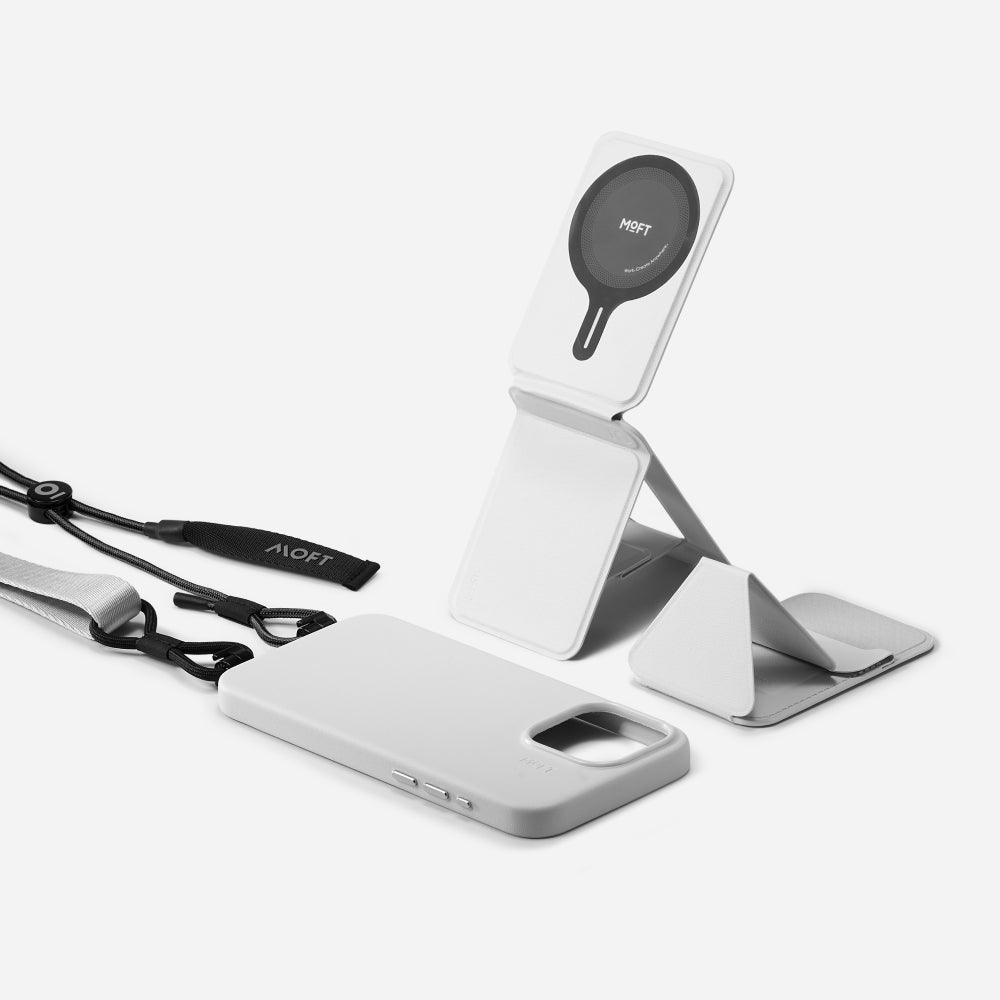 Snap-On スマホスタンドと七変化マルチスタンドをさっと交換。長さをすばやく調整できるストラップでより使いやすく。