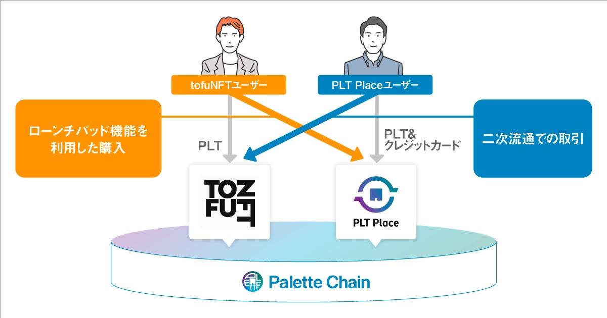 今回の提携によりHashPaletteが開発を手掛けるNFTに特化したブロックチェーン「パレットチェーン」が「tofuNFT」に新規チェーンとして追加されます。同じくHashPaletteが運営するNFTマーケットプレイス「PLT Place」と連携を行い、「パレットチェーン」上で今後発行されるNFTは、「tofuNFT」のローンチパッド機能を利用して購入できるようになります。また、二次流通の場として「tofuNFT」を選択することも可能となり、購入時にOffer(購入したい金額提示)機能等を利用できるようになります。