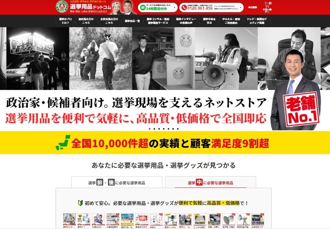 「選挙用品ドットコム」は、創業14年。全国10000件超の実績と顧客満足度9割超を誇る、日本の選挙現場を支える老舗トップブランドです。