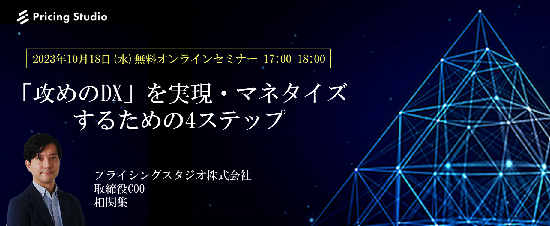 プライシングスタジオ株式会社|10月18日(水)17時~無料ウェビナー|「攻めのDX」を実現・マネタイズするための4ステップ
