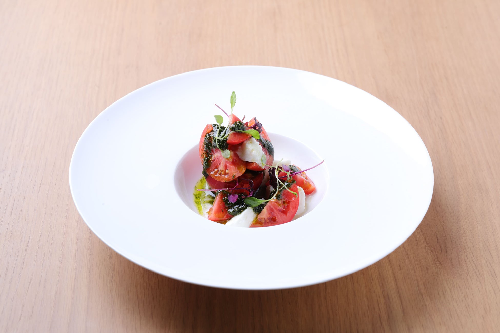 トマトの中でもしっかり甘いフルーツトマトを使用しています! バジルをソースにすることで全体的にカプレーゼを味わえるようにしました。 モッツァレラは水牛の物を使用しているのでクリーミーな味わいです♪