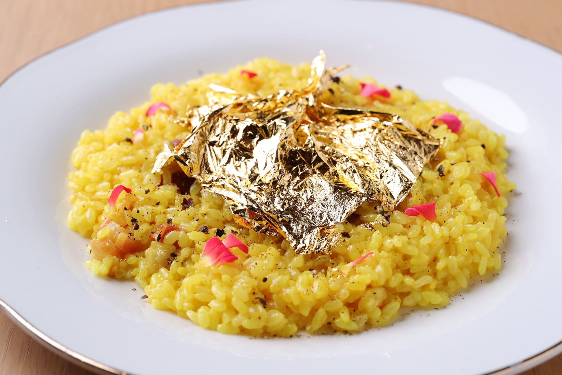 豪華に金箔をあしらったミラネーゼ。 牛のコンソメ、チーズのシンプルな味付けなのでとても食べやすいです!