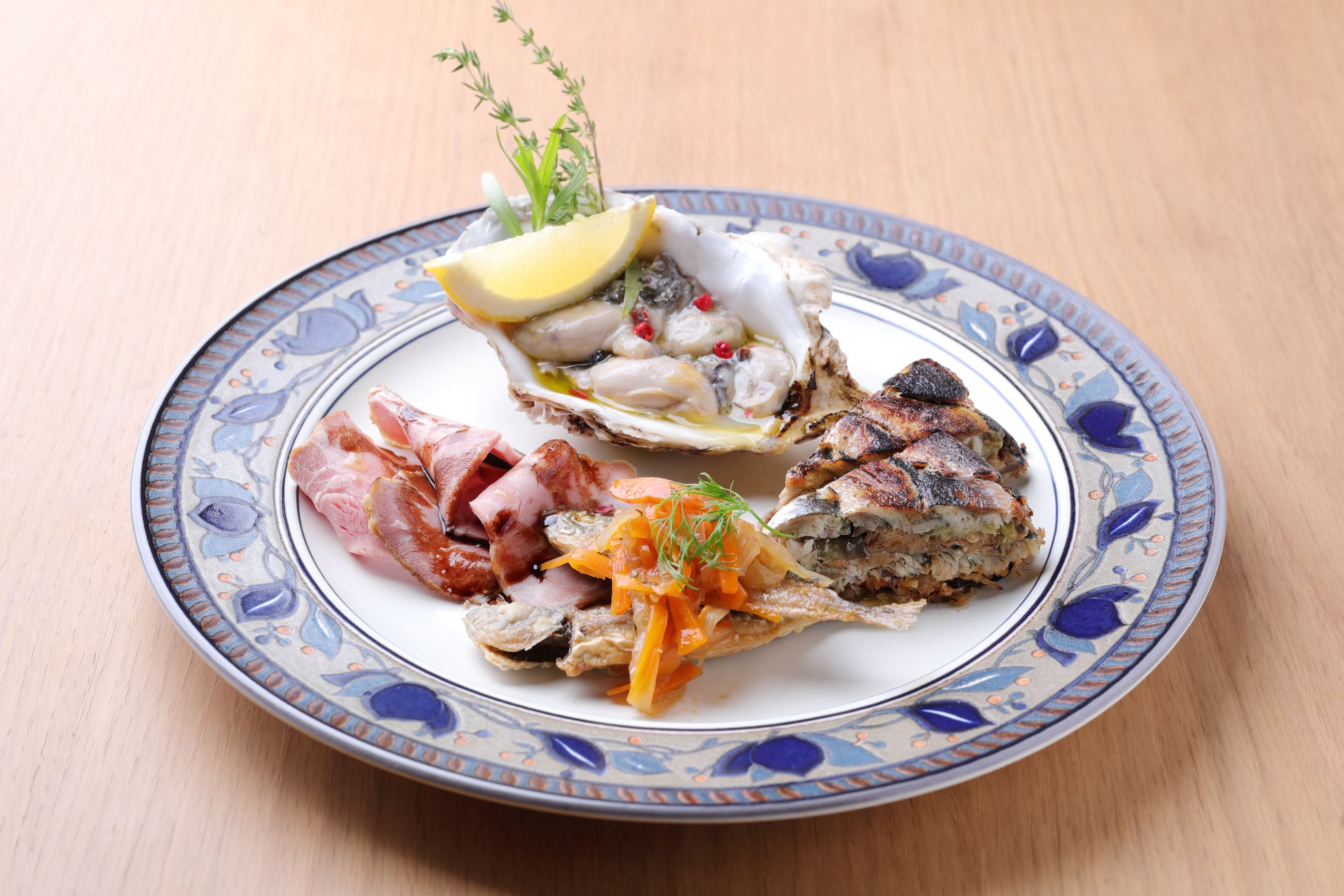 仕入れ状況により内容が変わるこちらの前菜盛り合わせ。 シェフのどれも手作りにこだわった一品になっております! 注文する時に内容がわかるのでその時のお楽しみになております♪