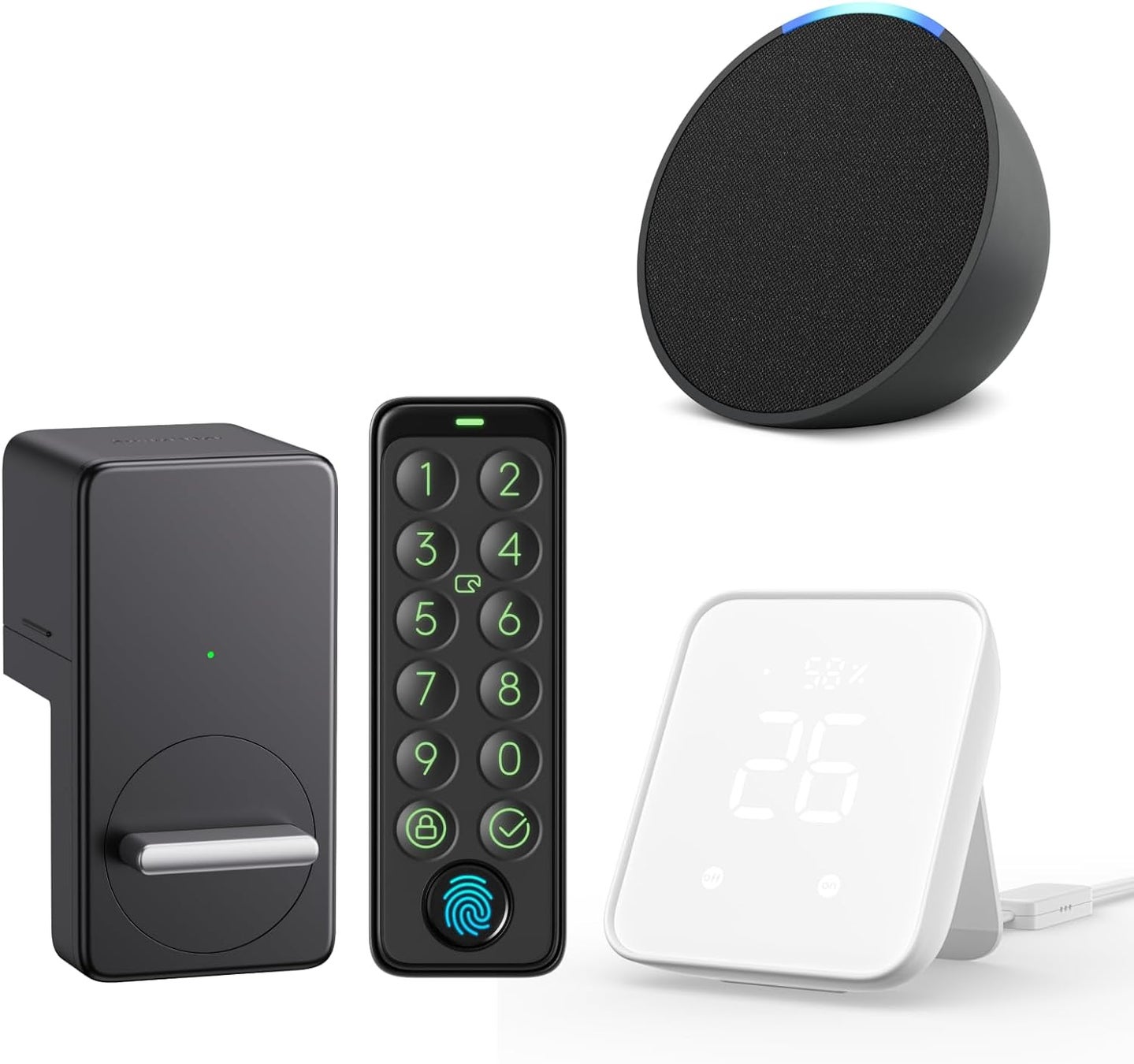 ■SwitchBot ロック 指紋認証パッドセット + SwitchBot ハブ 2 + Amazon Echo Pop チャコール