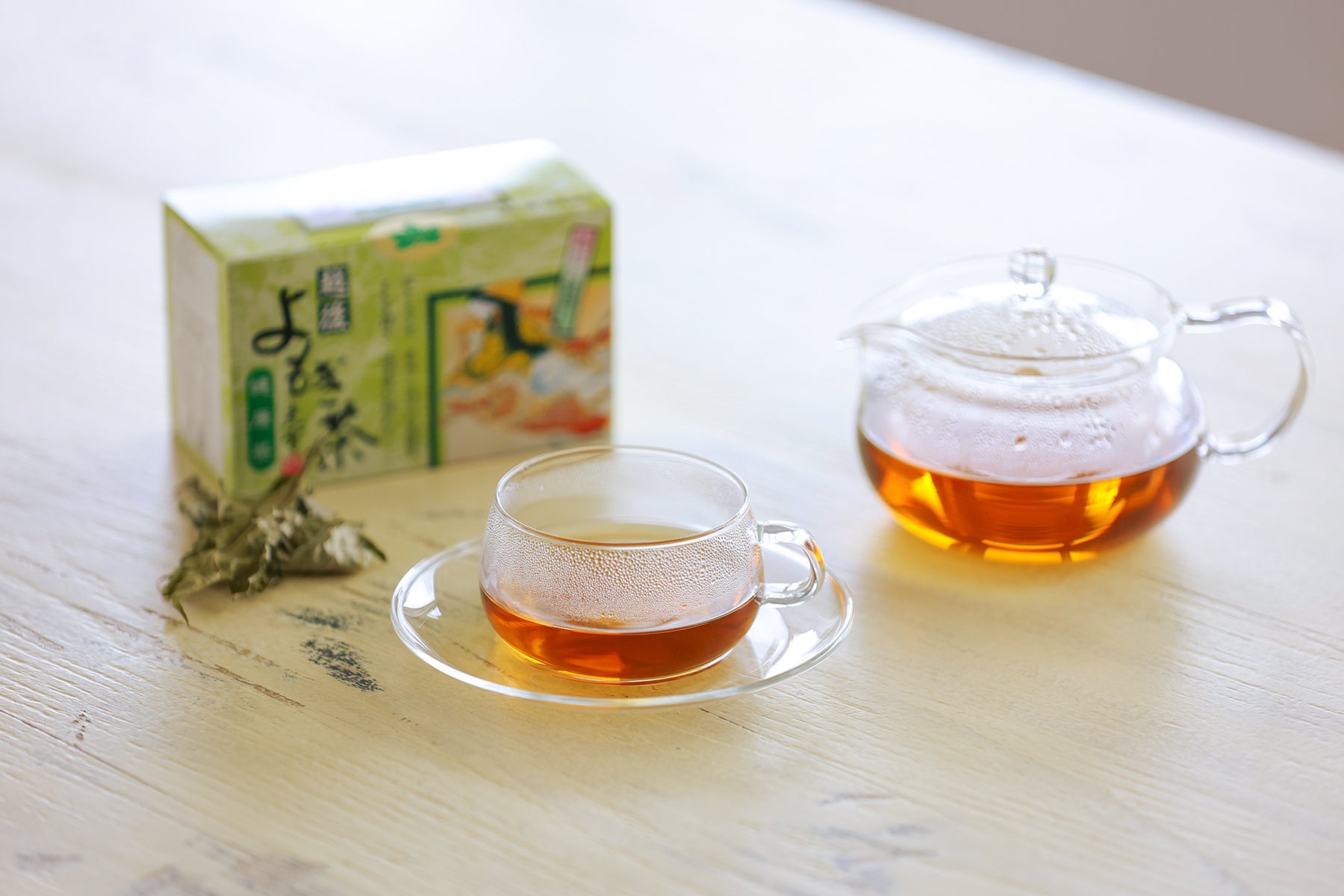 特長:新潟県産よもぎ100%、ノンカフェイン・香料無添加、胎内高原の超軟水使用