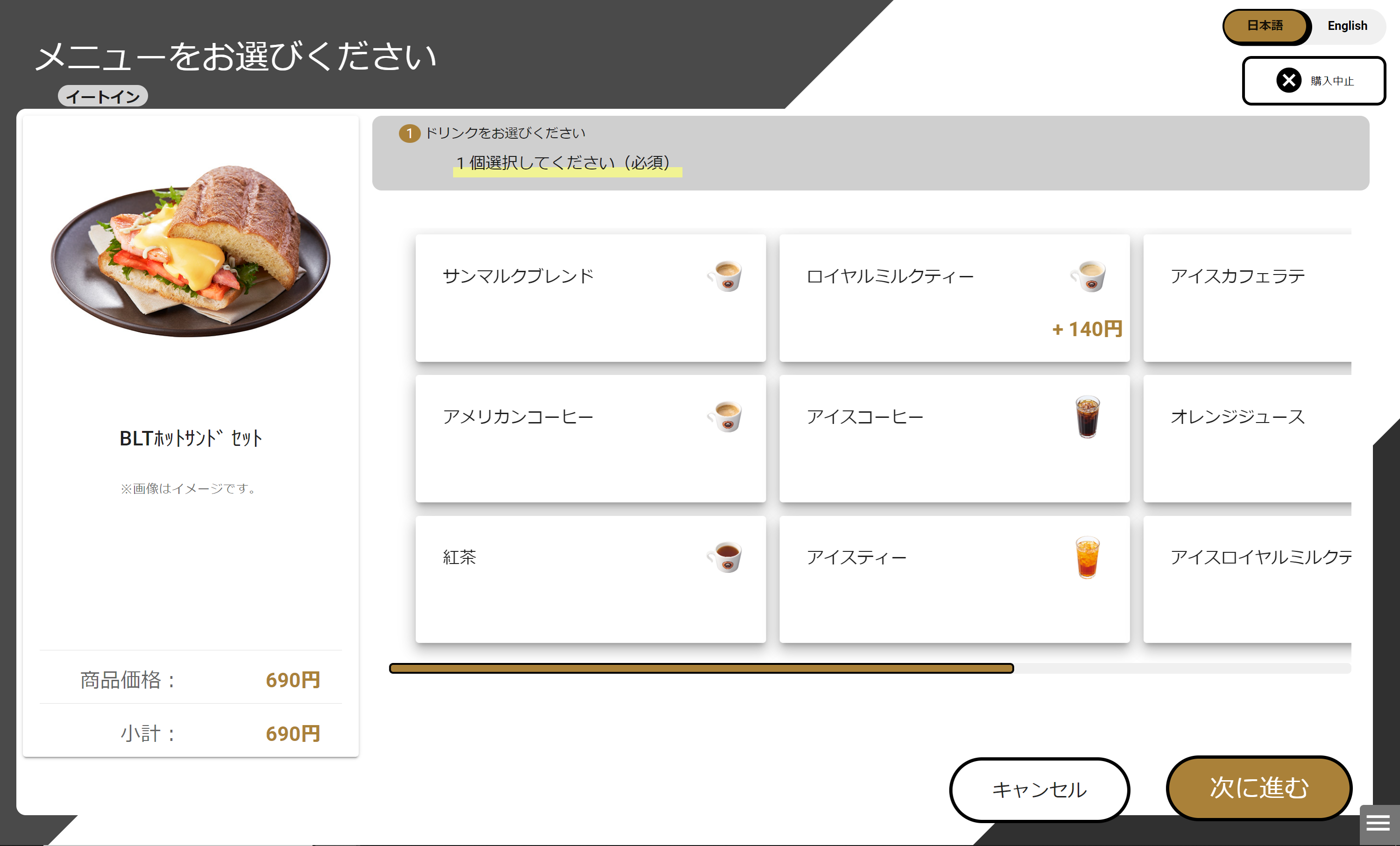 セットメニューのセットドリンクやサイズなどの、対象商品・追加料金が一目でわかり、初めてのお客さまでもスムーズにオーダーが可能です。