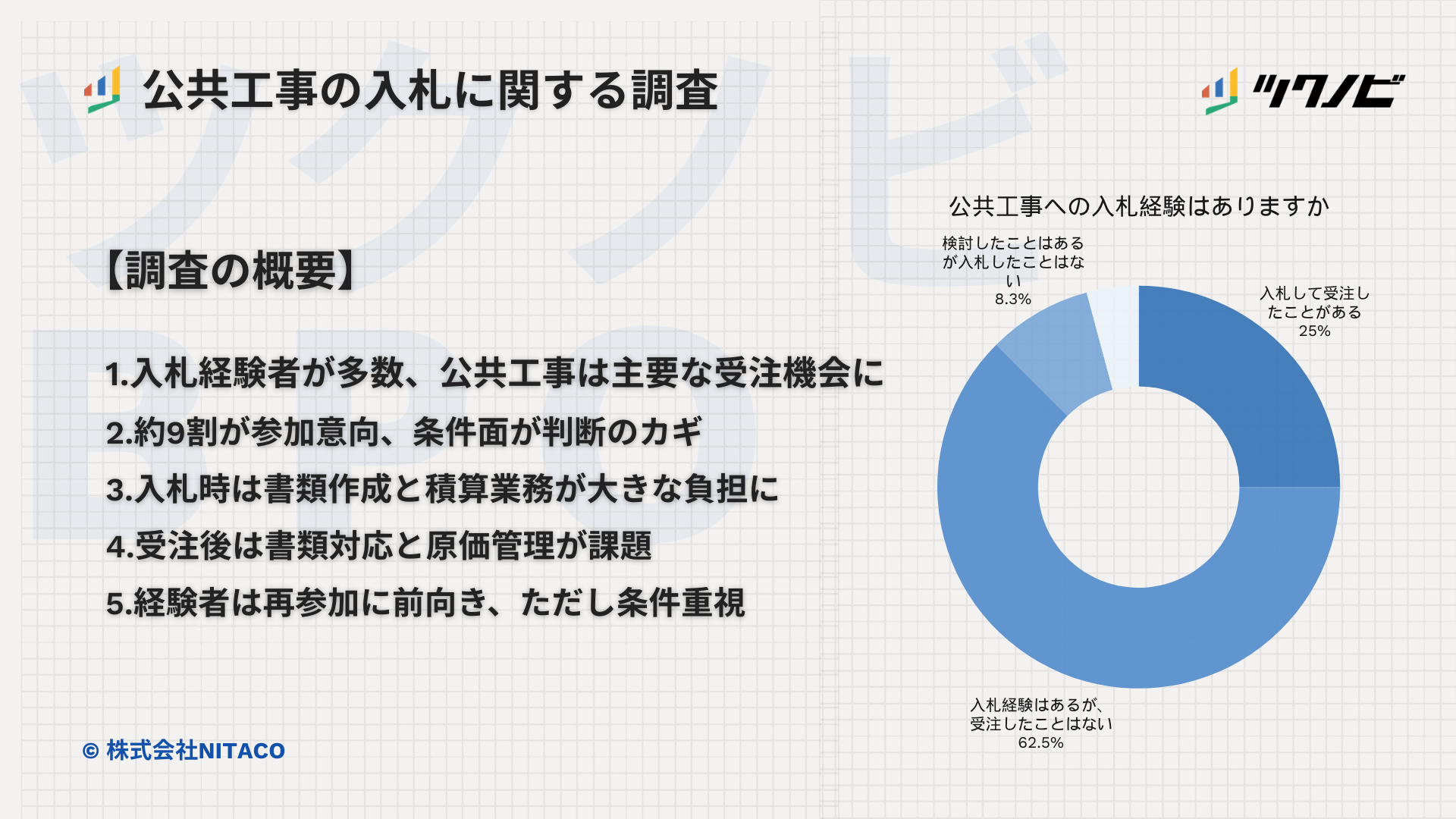 〜公共工事の入札と受注後の課題、再参加意向に関する調査〜