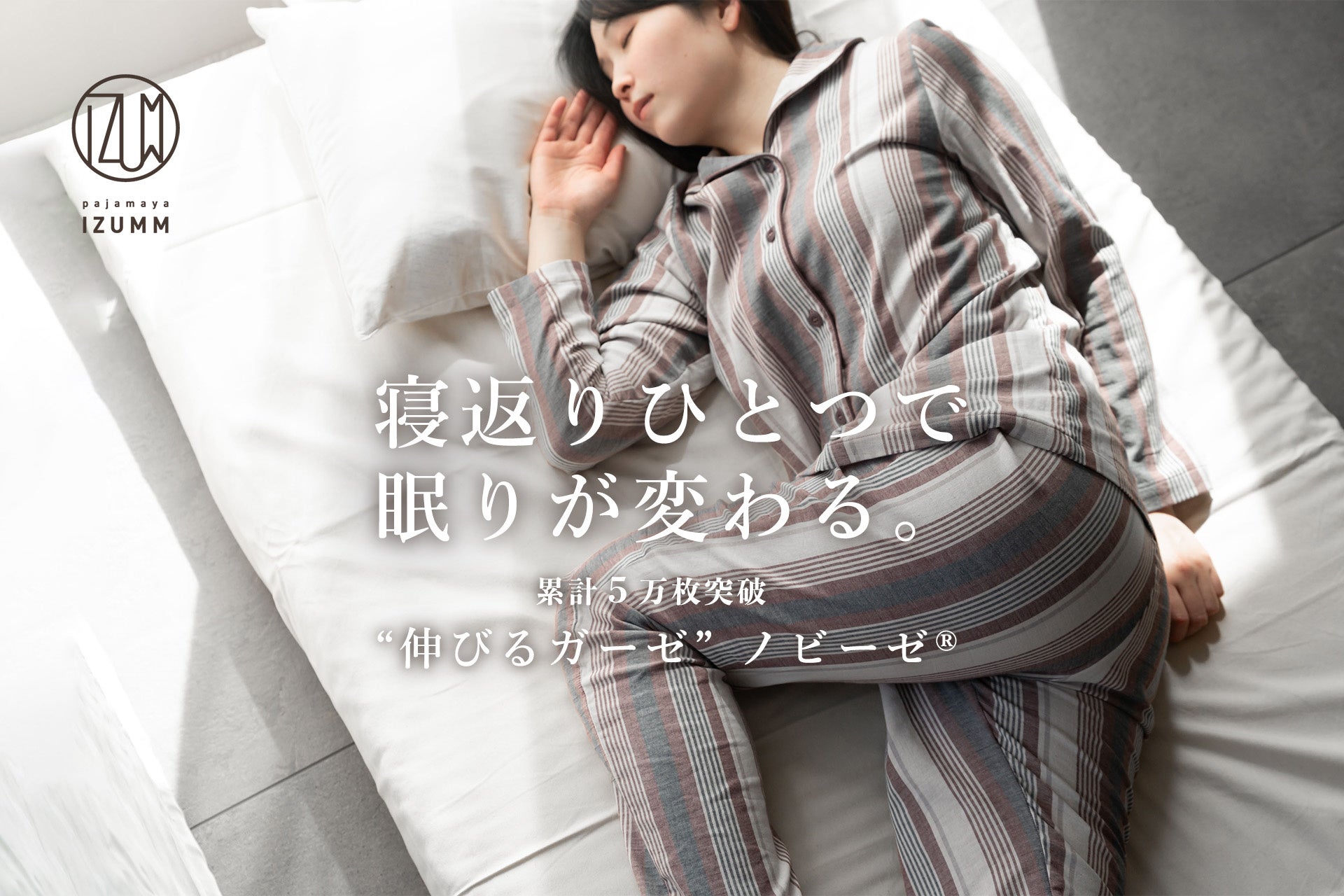 寝返りひとつで、眠りが変わる。累計5万枚突破、“伸びるガーゼ”の元祖が進化。ノビーゼ®︎「UNO」販売開始|パジャマ屋IZUMM