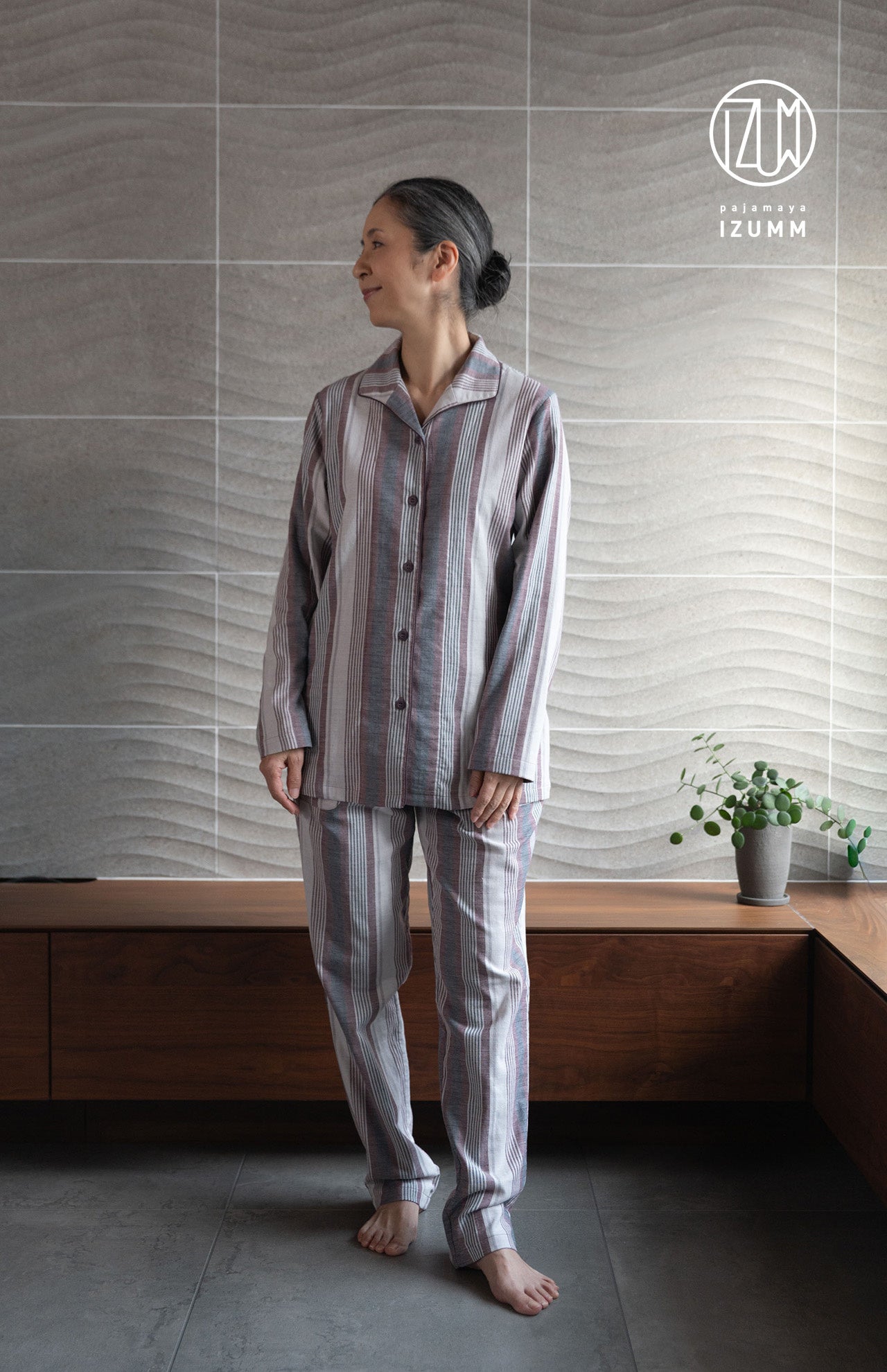 ・ストレッチ2重ガーゼ ベーシックノビーゼ “UNO” レディースパジャマ 長袖・前開き
