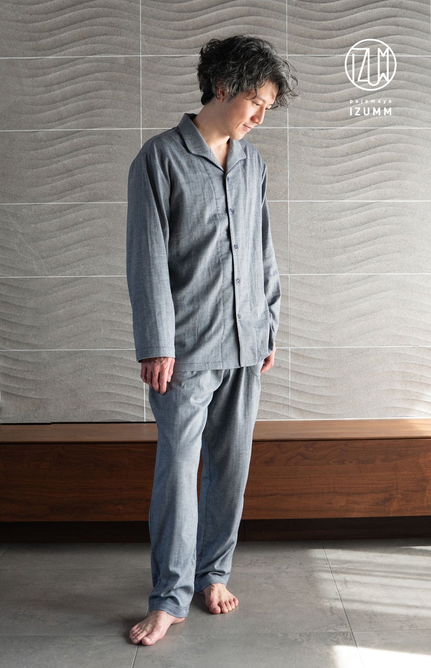 ・ストレッチ2重ガーゼ ベーシックノビーゼ “UNO” メンズパジャマ 長袖・前開き