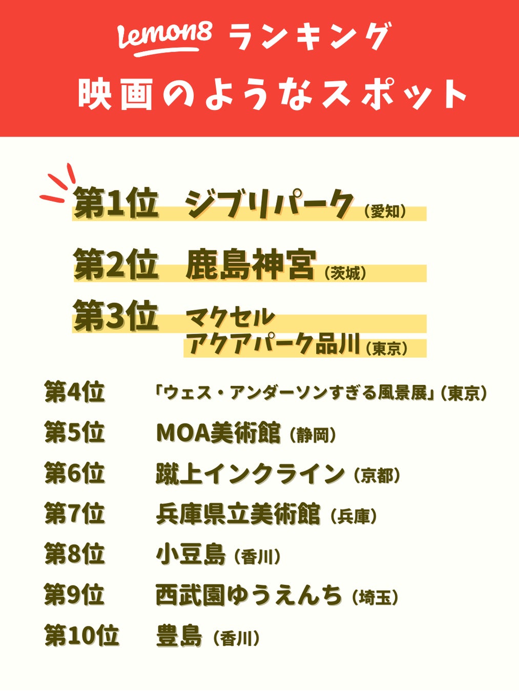 Lemon8「映画のようなスポット」ランキングページ