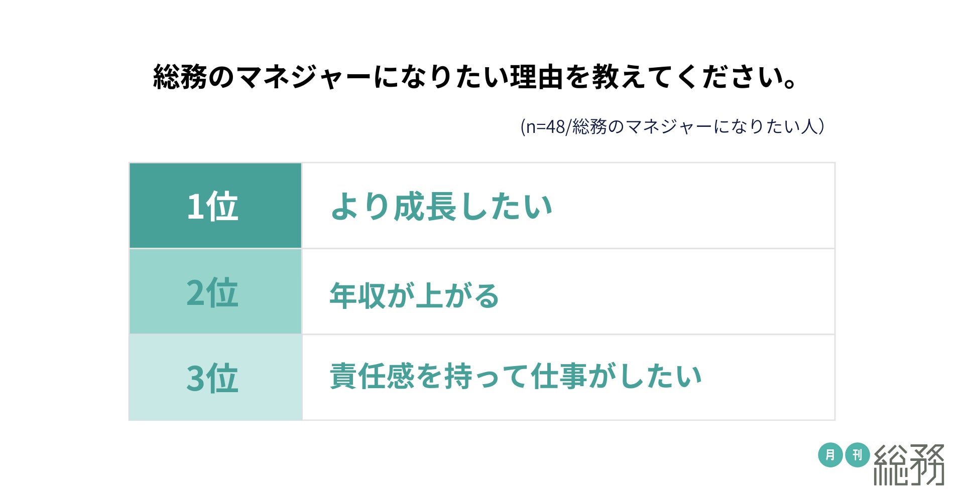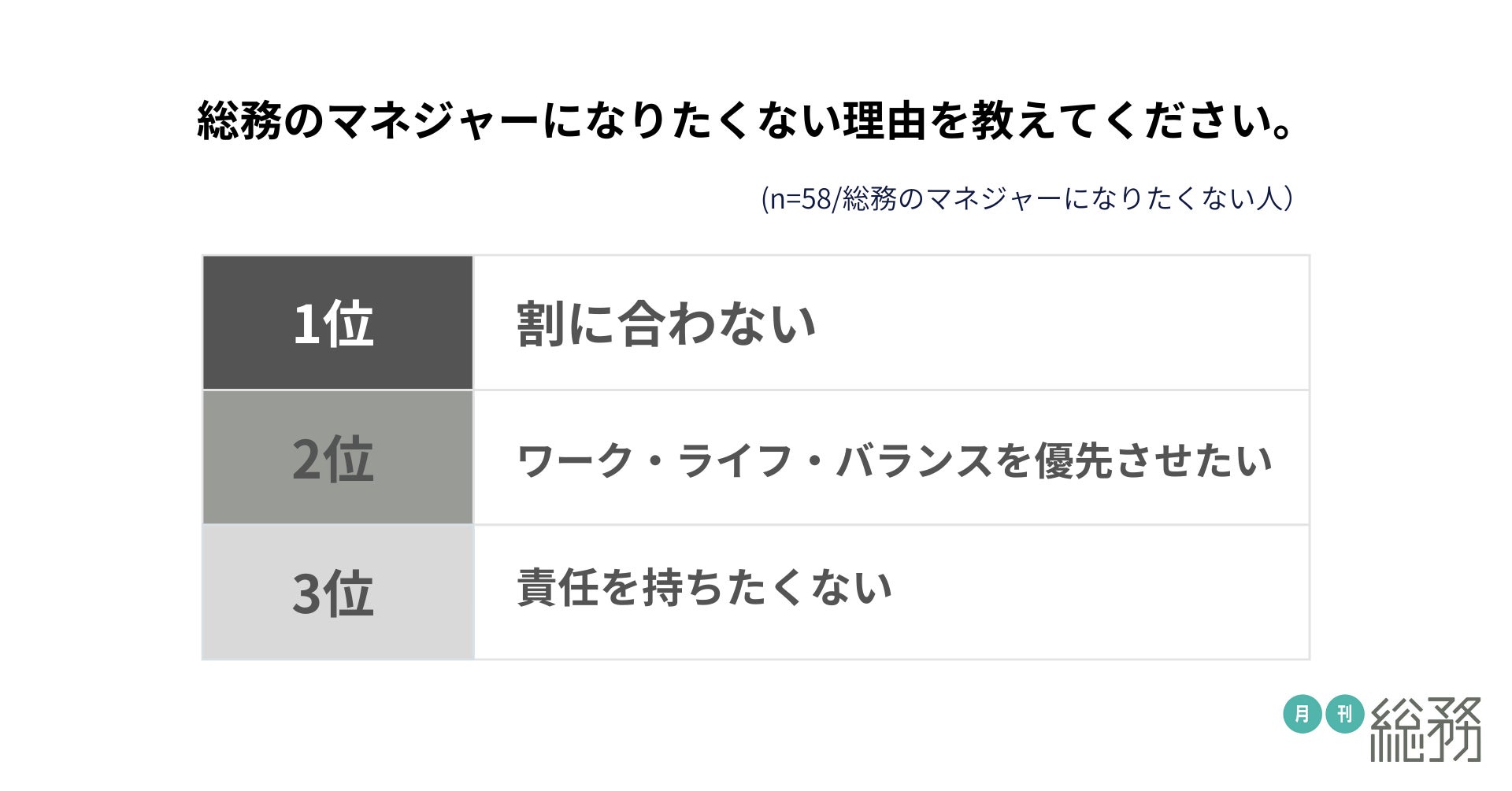総務のマネジャーになりたい理由「成長したい」、なりたくない理由「割に合わない」