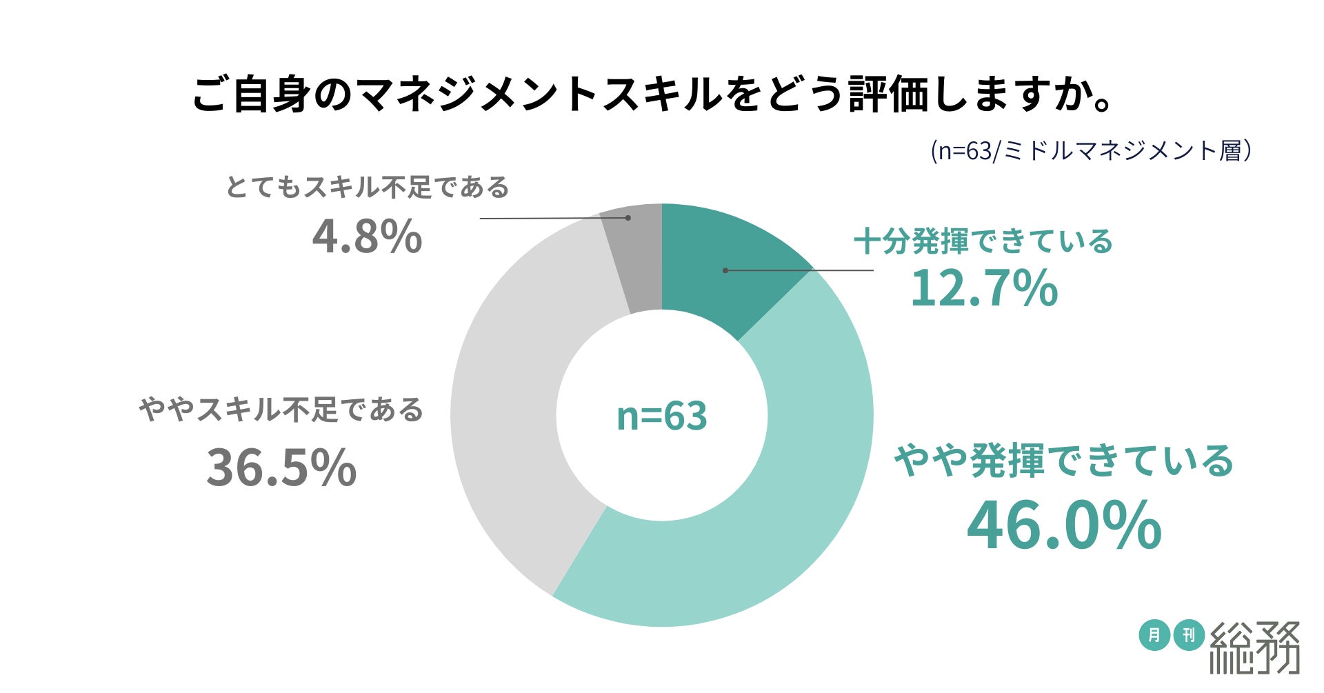また、ミドルマネジメント層に自身のマネジメントスキルをどう評価するか尋ねたところ、約6割が発揮できていると回答しました(n=63/ミドルマネジメント層)。