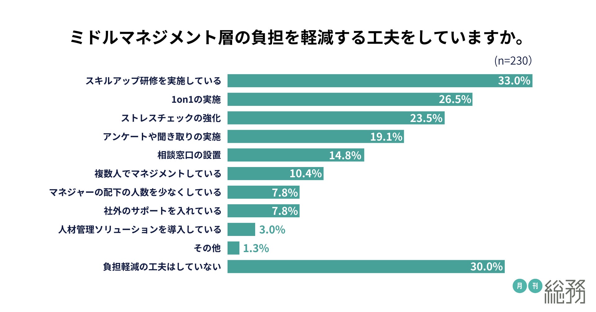 3割がミドルマネジメント層の負担を軽減する工夫を何もしていない