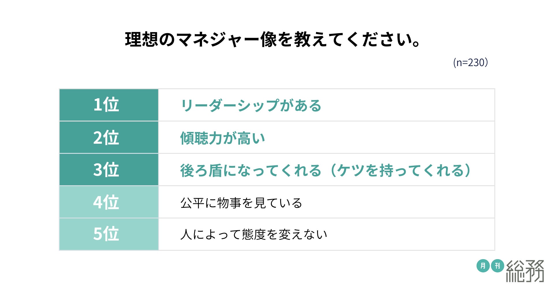 理想のマネジャーは「リーダーシップが高い」「傾聴力が高い」「後ろ盾になってくれる」