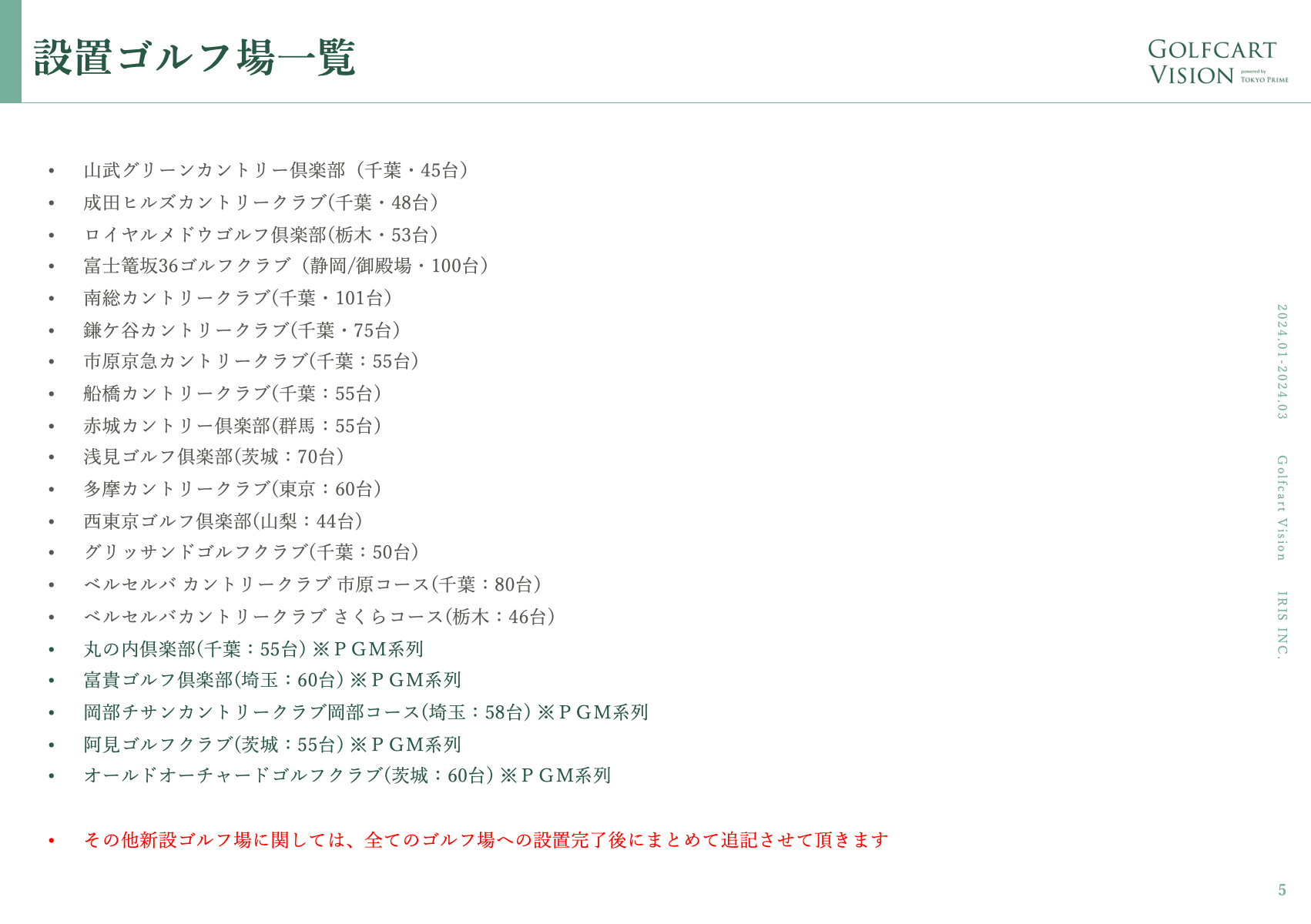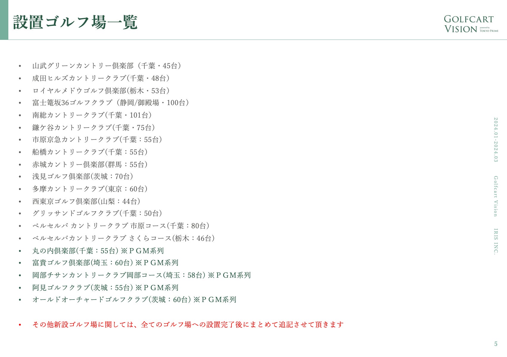 2024年1月時点での設置ゴルフ場は以下画像の予定です。