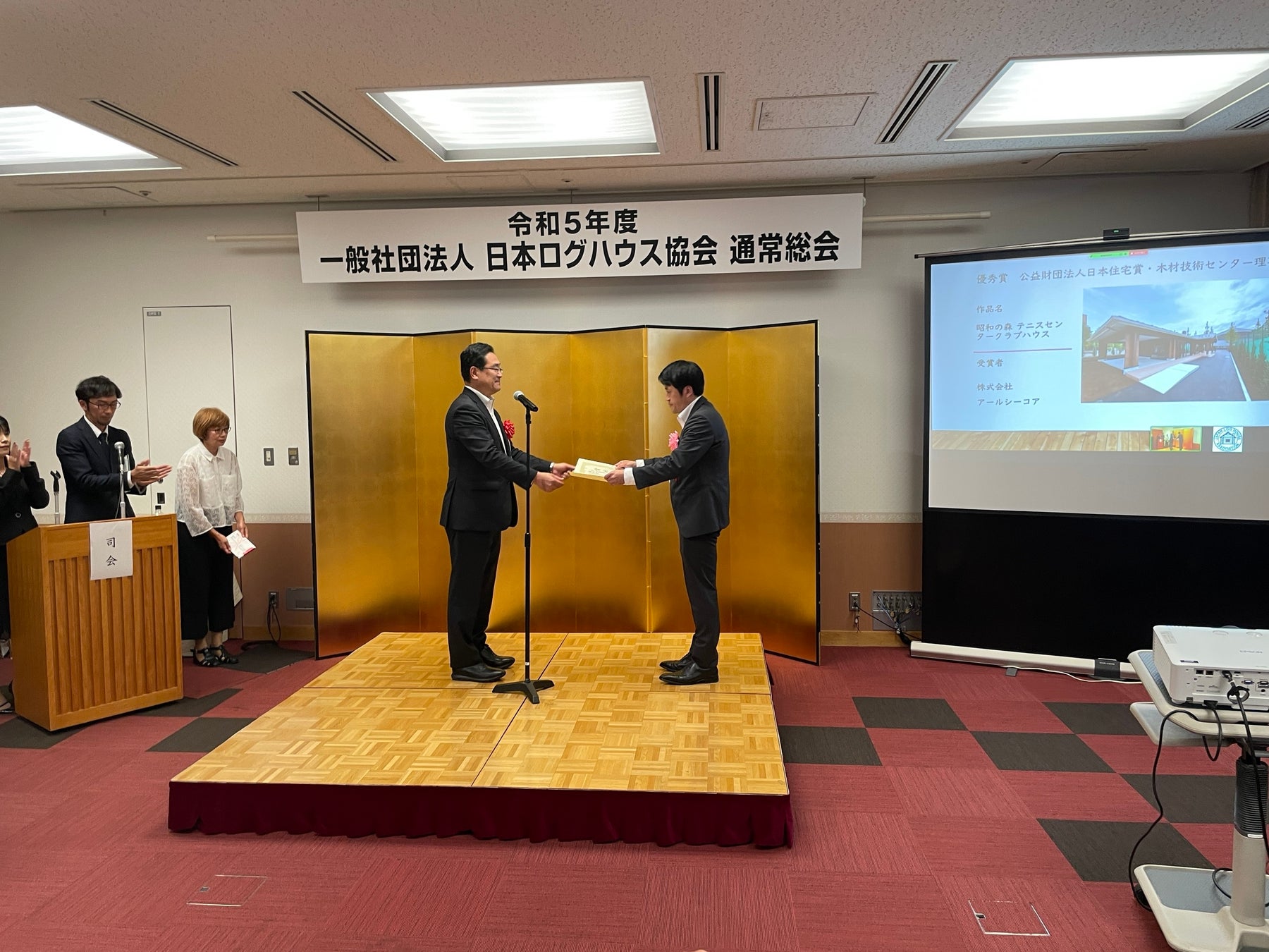 CLTログハウスの可能性を拡大 (株)アールシーコア設計・施工テニスセンタークラブハウスのCLTログハウス※1が日本ログハウス協会ログハウス建築コンテストで「優秀賞」を受賞!