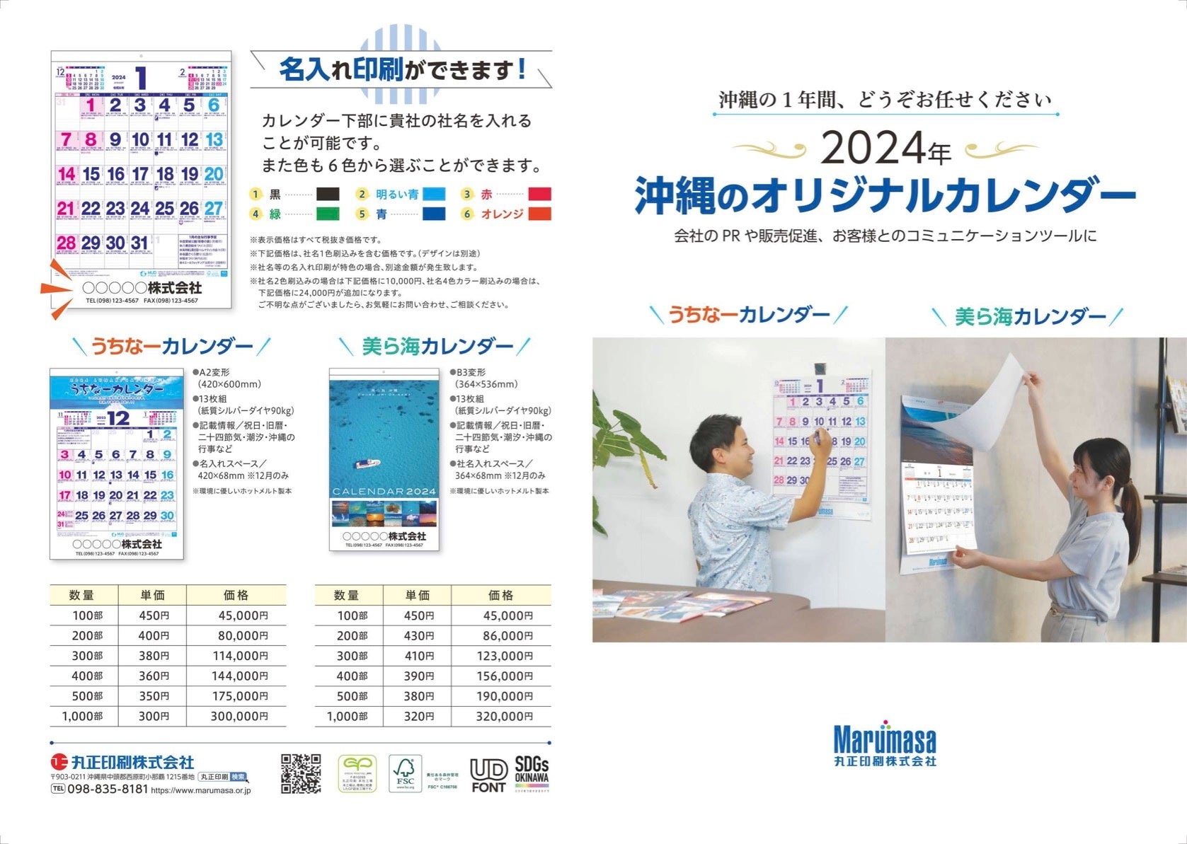 うちなーカレンダーと美ら海カレンダーの2種類のオリジナルカレンダーを制作し、7月から販売開始しました。