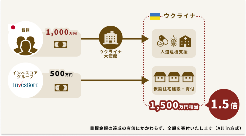 (なお、当社グループ拠出の支援金総額については、当初皆様からお預かりした支援金の50%としておりましたが、原材料費高騰や円安の影響等により66%まで引き上げて現在プロジェクトを進行しています。)