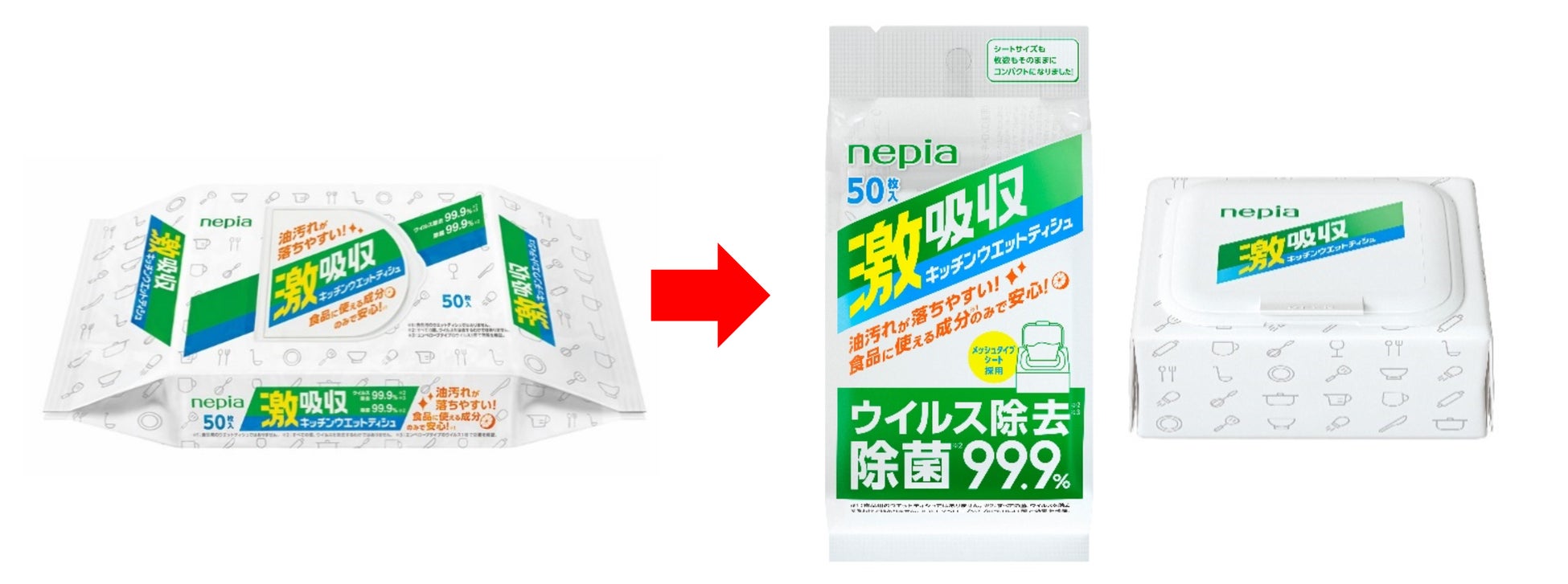 あわせて、「ネピア 激吸収キッチンウエットティシュ」もリニューアルして10月1日(火)より発売いたします。