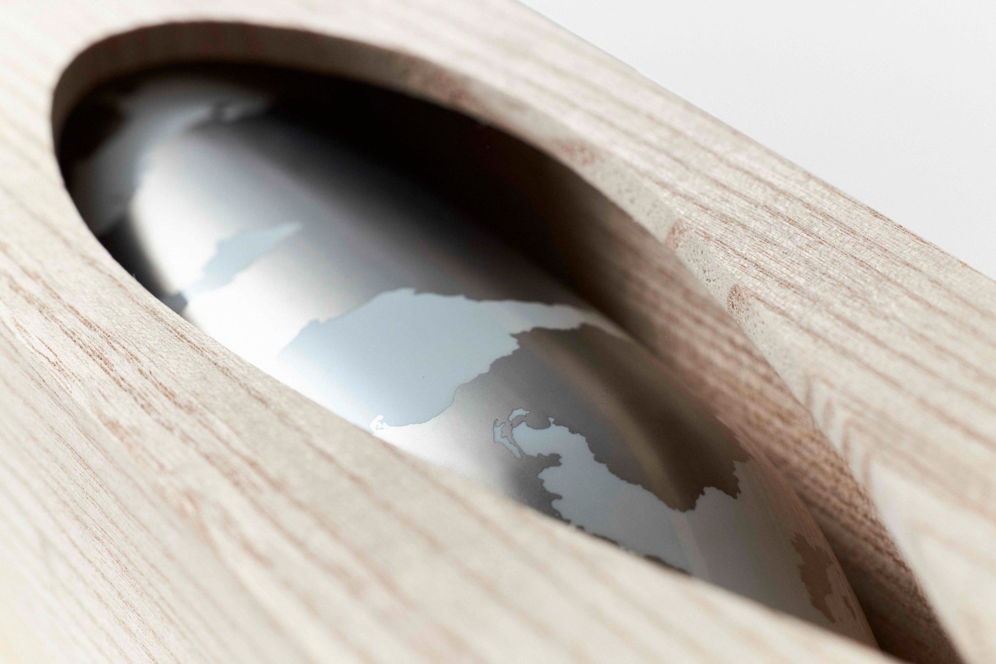 錦鯉のシルエットがくり抜かれた桐箱は、200年の伝統をもつ桐箪笥の産地として有名な新潟県加茂市製。桐の柔らかい質感が滑らかな瓶と見事に調和しています。