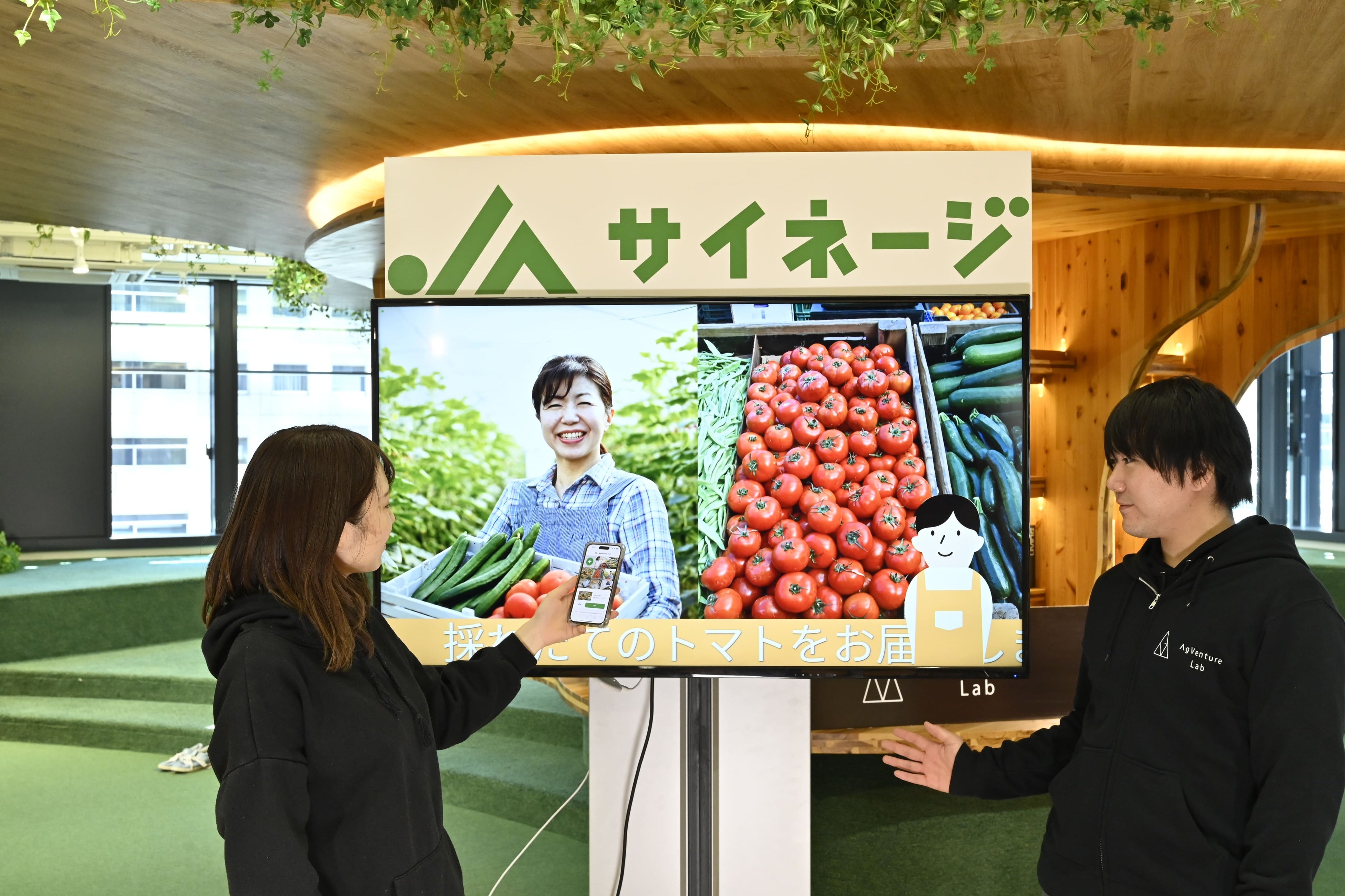 一般社団法人 AgVenture Lab(東京都千代田区、代表理事理事長:荻野浩輝、以下「AgVenture Lab」)は、農畜産物直売所が手軽に扱えるPRサービス「JAサイネージ」を正式リリースし、利用受付を開始しました。スマホから写真や動画の宣材を大画面モニターへリアルタイムで配信できるサービスで、「生産者の今日の採れたてを素早くアピールしたい」という直売所の声を受けて、開発されました。