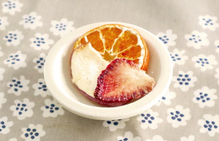 神奈川県産のみかん、国産のいちご、山梨県産のりんごをドライフルーツにしました。