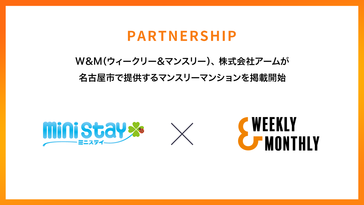 Weekly&Monthly株式会社(本社:北海道札幌市北区、代表取締役:黒木 健次郎)は、ウィークリー・マンスリーマンション総合情報サイト「W&M(ウィークリー&マンスリー)」において、株式会社アーム(本社:愛知県名古屋市中区、代表取締役:安藤 茂久)が名古屋市で提供するマンスリーマンションを掲載開始いたします。