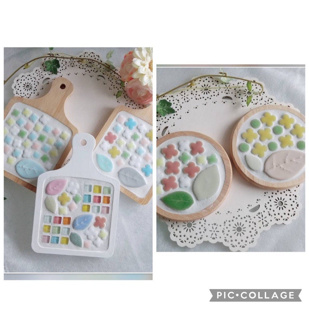 色々な形のタイルを組み合わせてオリジナル作品を作ってみましょう!コースター、トレイ、鍋敷きが作れます♪
