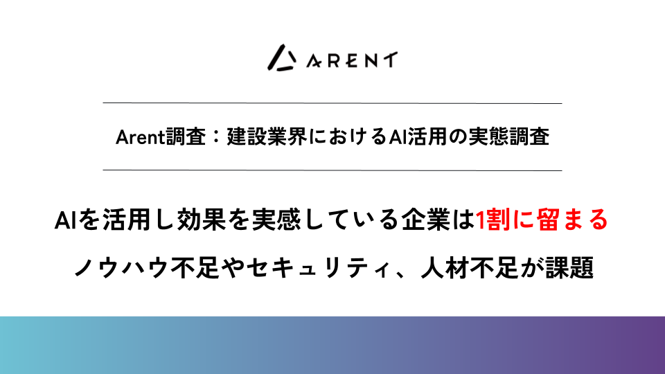 建設DXを推進する株式会社Arent(東京都中央区、代表取締役社長:鴨林広軌、以下Arent)は、日本経済団体連合会の後援を受けて2024年4月17日に実施したハイブリットセミナー「世界でも類を見ない建設DXセミナー」において、建設業界におけるAI活用の実態に関するアンケートを実施しました。