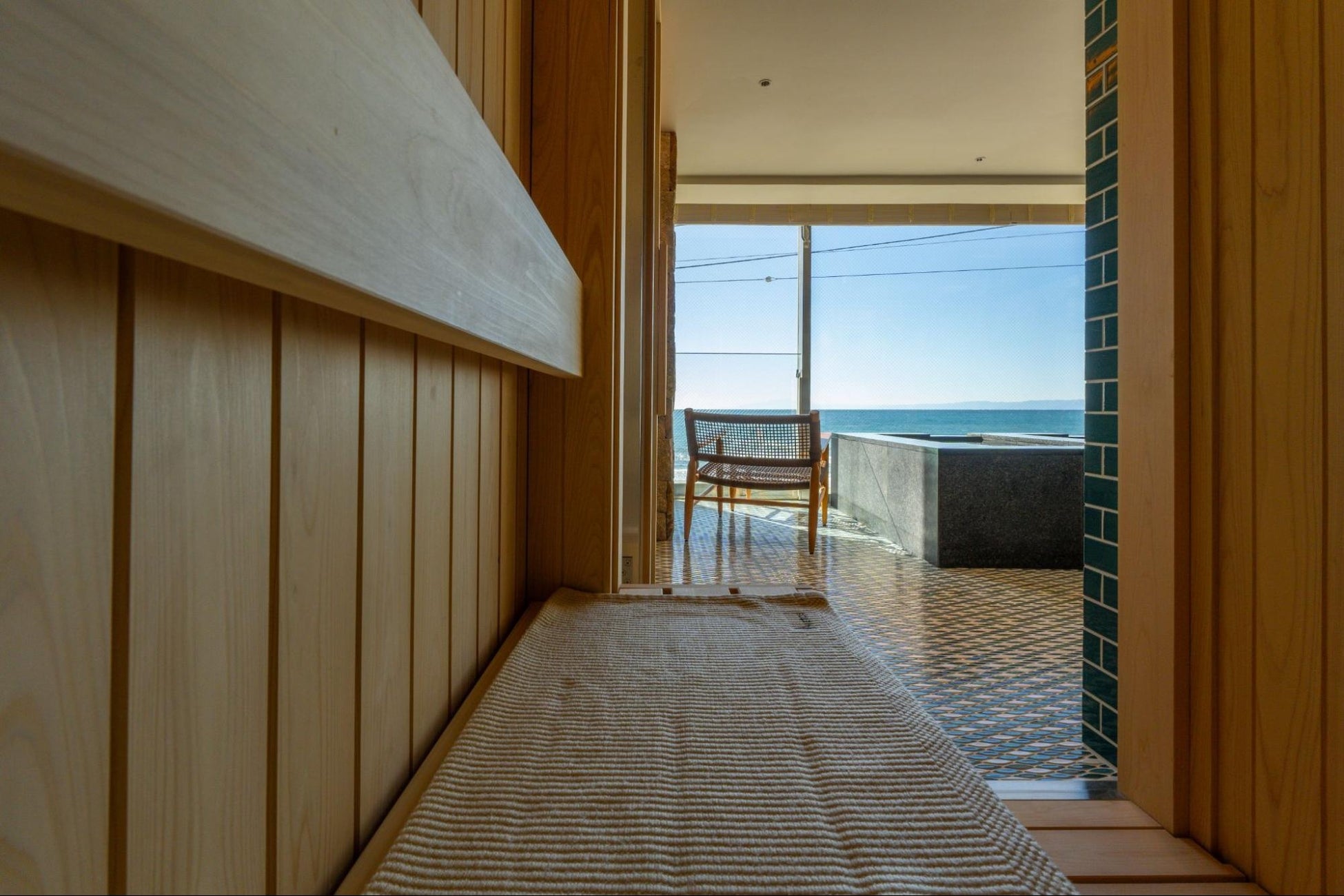 バスルームにはサウナと水風呂を完備。材木座海岸を感じながらととのう、贅沢なバスタイムをご体感いただけます。この場所でしか味わえない極上の癒しをお楽しみください。
