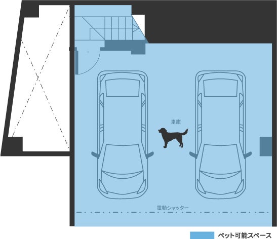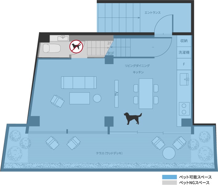 UMTO 鎌倉 材木座のペット可能エリアは下記画像の青色のスペースとなっております。