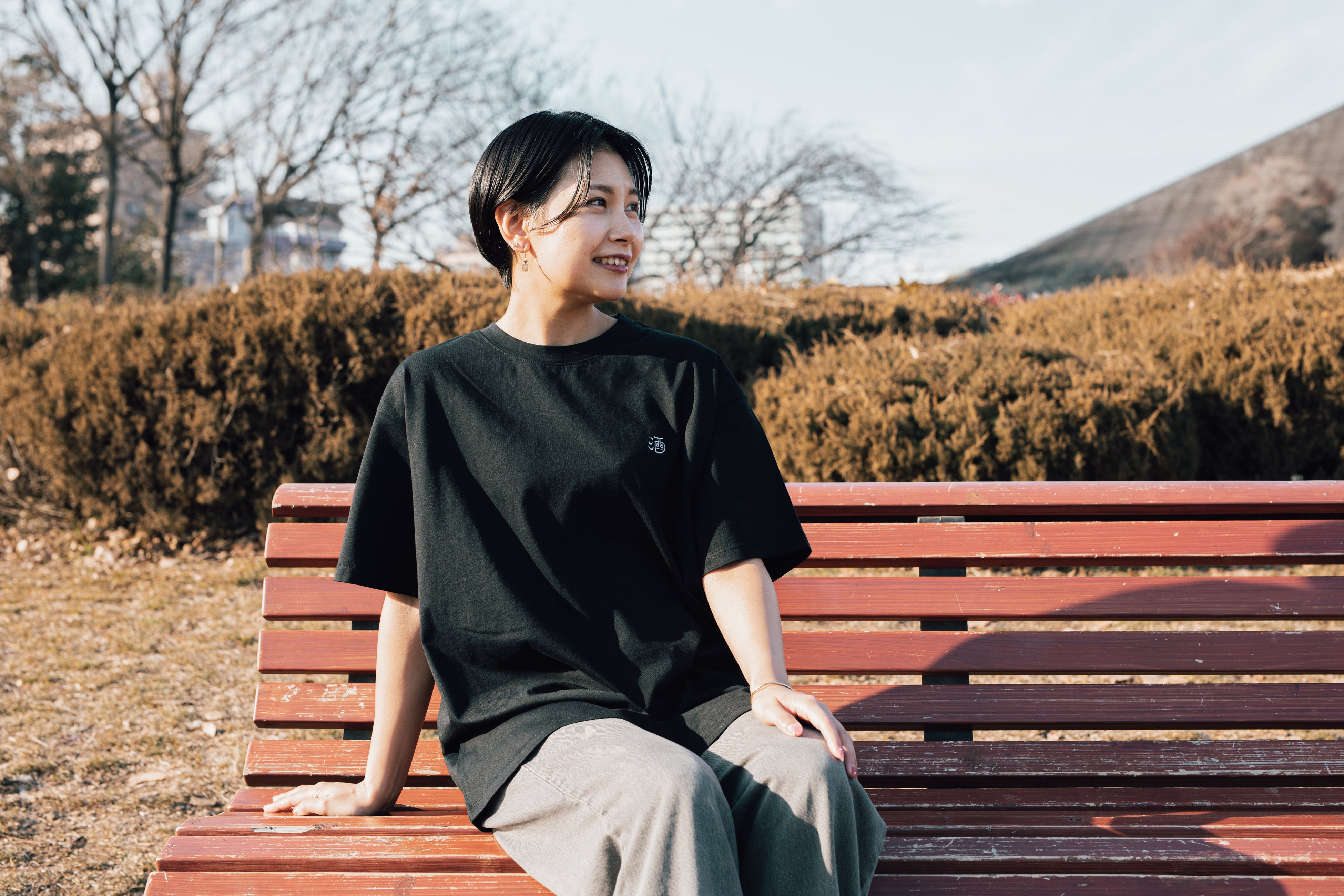 さらに、素材には毛羽立ちを抑えた、滑らかでつや感のあるコットン100%の天竺生地を使用し、肌触りの良さを追求。程よい厚さの 6.3 オンスで、きめ細かくさらっと滑らかな着心地が特徴です。シルエットは、デニムやスカーフなど手持ちのアイテムとも合わせやすいドロップショルダーで仕上げました。
