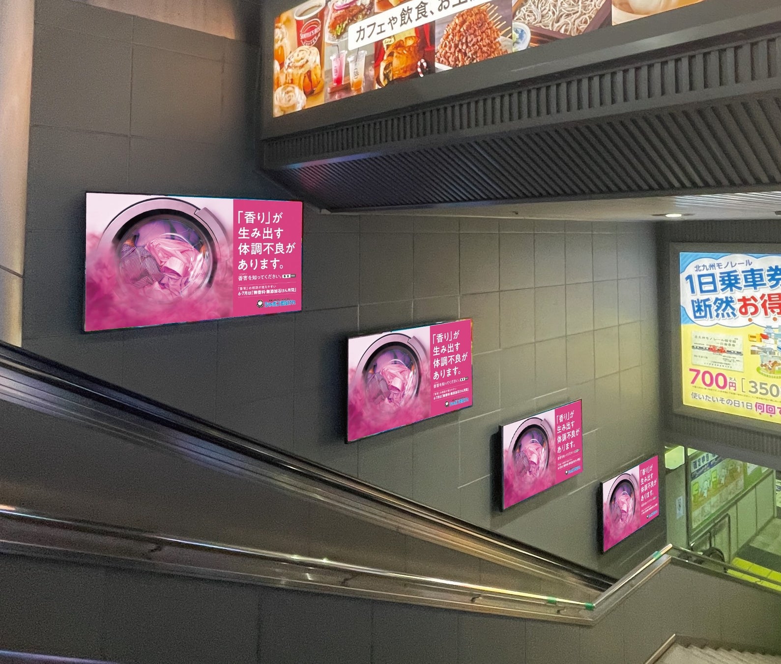 また、6月7日(水)~13日(火)の1週間、北九州モノレール改札内エスカレーター横のデジタルサイネージにて、香害意見広告も展開いたします。