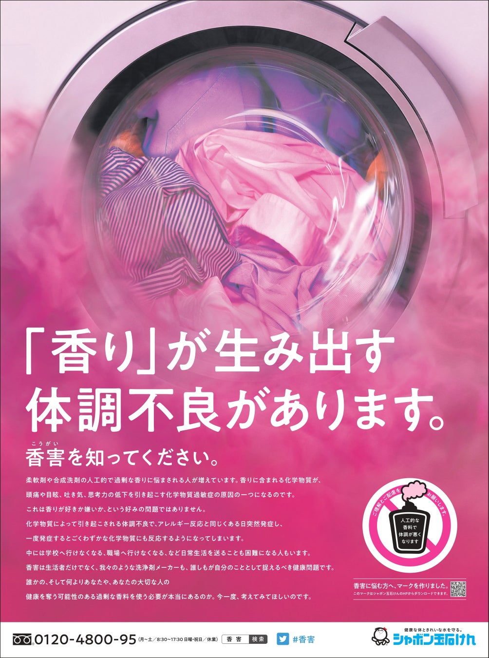 ※シャボン玉石けんでは、2018年より香害・化学物質過敏症を啓発するため、「香害」意見広告を実施しています。
