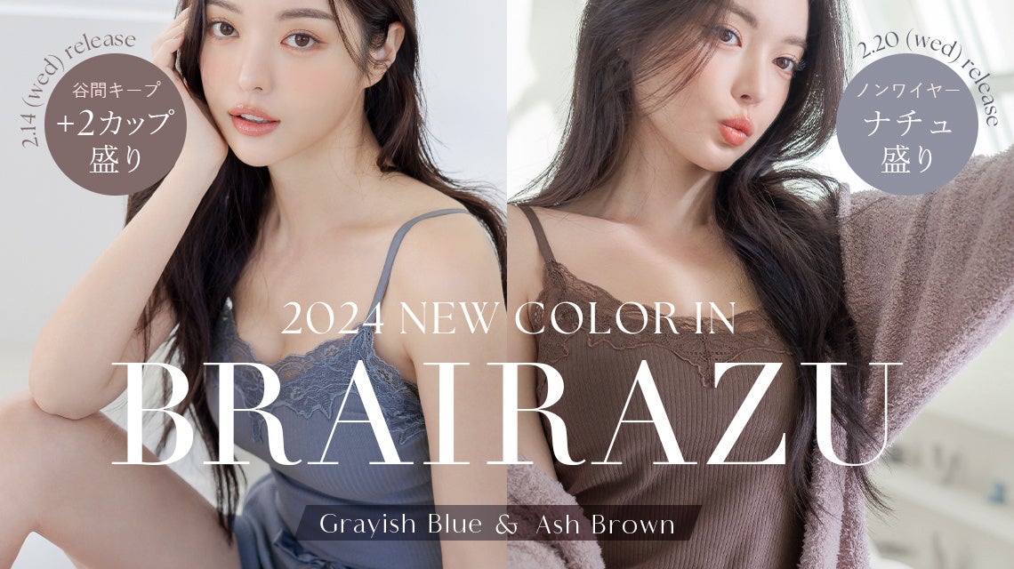 盛りブラ一体型キャミで”バストの形を綺麗に・楽に盛れる”「BRAIRAZU(ブライラズ)シリーズ」から新色の「アッシュブラウン」「グレイッシュブルー」が登場。しっかり盛れるモチモチパッドと食い込み軽減を軽減するソフトワイヤー搭載で着るだけで2カップUP。トレンド感のあるリブキャミソールやネックラインのVレースはトップスとのレイヤードにも最適です。