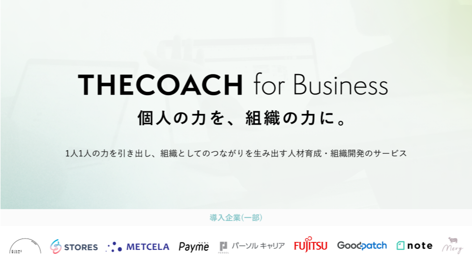 THE COACHは「コーチングマインドを広げること」というビジョンのもと、コーチングスクールを運営し、1,200名以上のコーチ育成実績を持ち、国際的な資格を持つプロコーチが多数在籍しています。法人向けサービス「THE COACH for Business」では、「個人の力を、組織の力に。」をキーメッセージとして、コーチングスクールで培ったノウハウを基に、個人の内発的動機に根ざしたした人材育成・組織開発サービスをご提供し、個人と組織の可能性を最大化する支援を行っています。