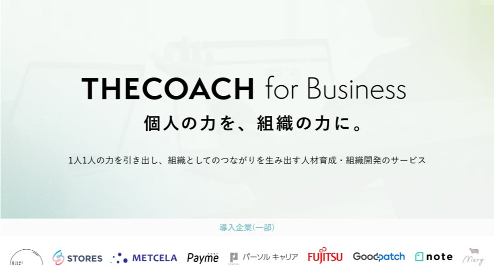 法人向けサービス「THE COACH for Business」では、「個人の力を、組織の力に。」をキーメッセージとして、1人1人の力を引き出し、組織としてのつながりを生み出す「人と関係性を起点とした組織」への移行に向けたプログラムをカスタマイズして提供しています。スタートアップから大企業まで、幅広い企業様にご活用いただき、人と組織の内的成長に貢献しています。詳しくは、各ウェブサイトをご参照ください。