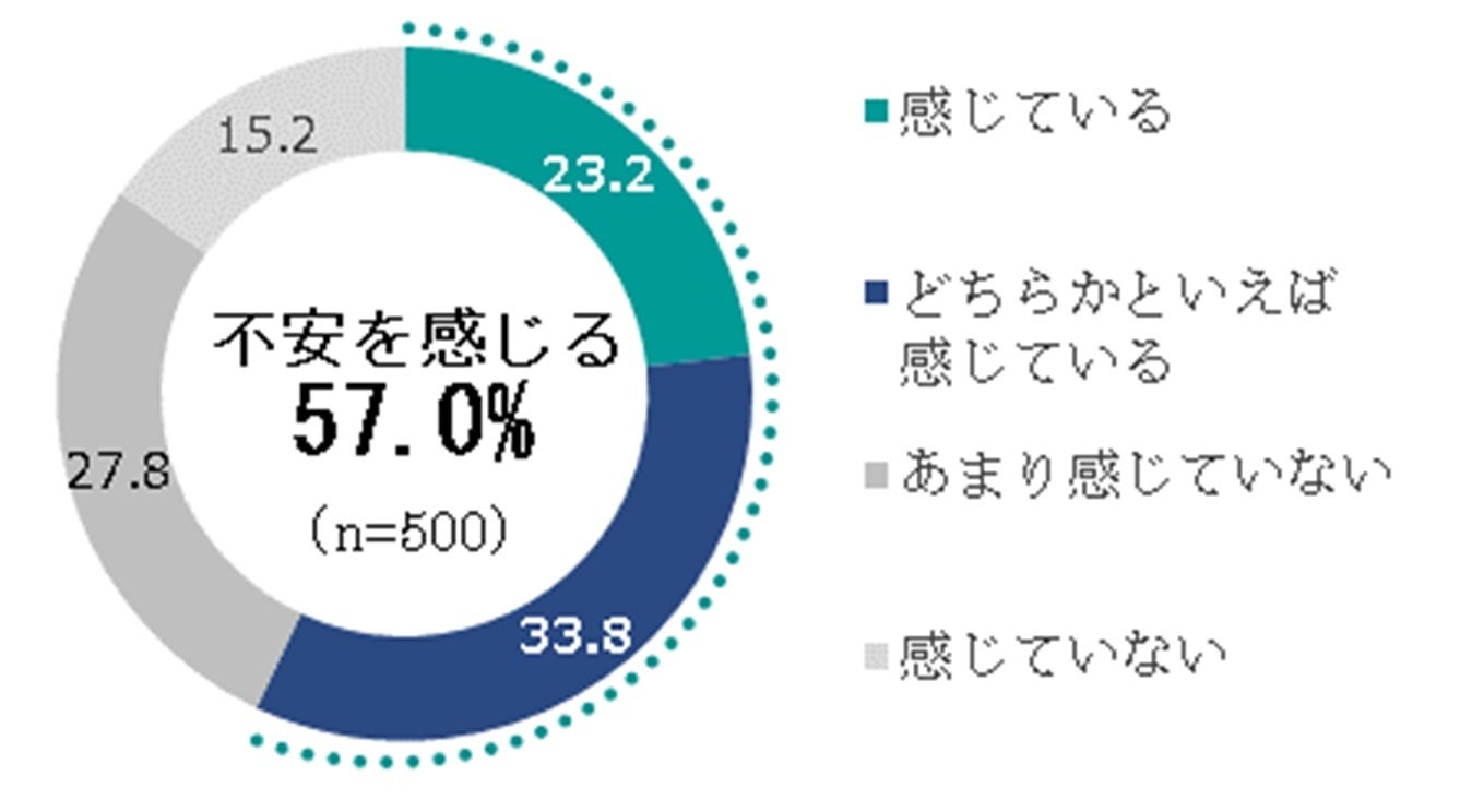 最近何かに不安を感じているという人が57.0%に上りましたが、不安を解消するための対策をしている人は29.8%と3割にも満たなく、多くの人が「自分だけは大丈夫」という心理が働く「正常性バイアス」によって対策を講じられていないと読み取れます。