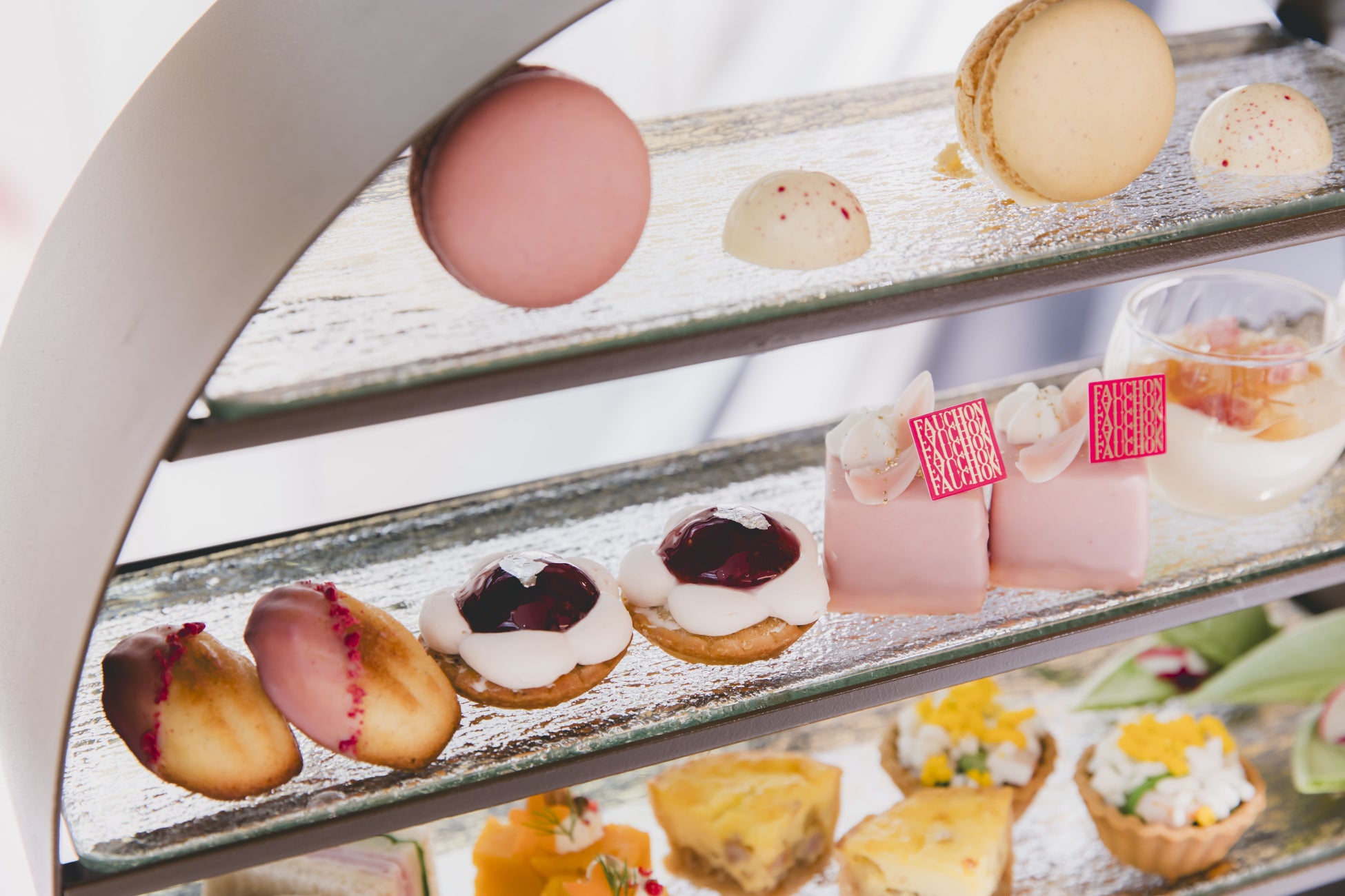 「桜のアフタヌーンティー」をテーマに、可愛らしいピンク色のスイーツや春の食材を使用したセイボリーが並ぶ春のアフタヌーンティーは3月1日(金)よりスタート。桜からインスピレーションを受け、フランス語で「桜」を意味する「スリジエ」と名付けられた各スイーツを通して、華やぎのアフタヌーンティータイムをご堪能いただけます。人気のパルフェには桜の花びらが入ったソースをかけて、ジュレやアイスクリームのうっとりするくちどけをお楽しみください。ベーコンと新たまねぎのキッシュはフォション・パリのレシピの通り、生クリームとチーズをたっぷりと使用。また、フランス料理を和にアレンジした最中を用いるユニークなメニューも登場いたします。