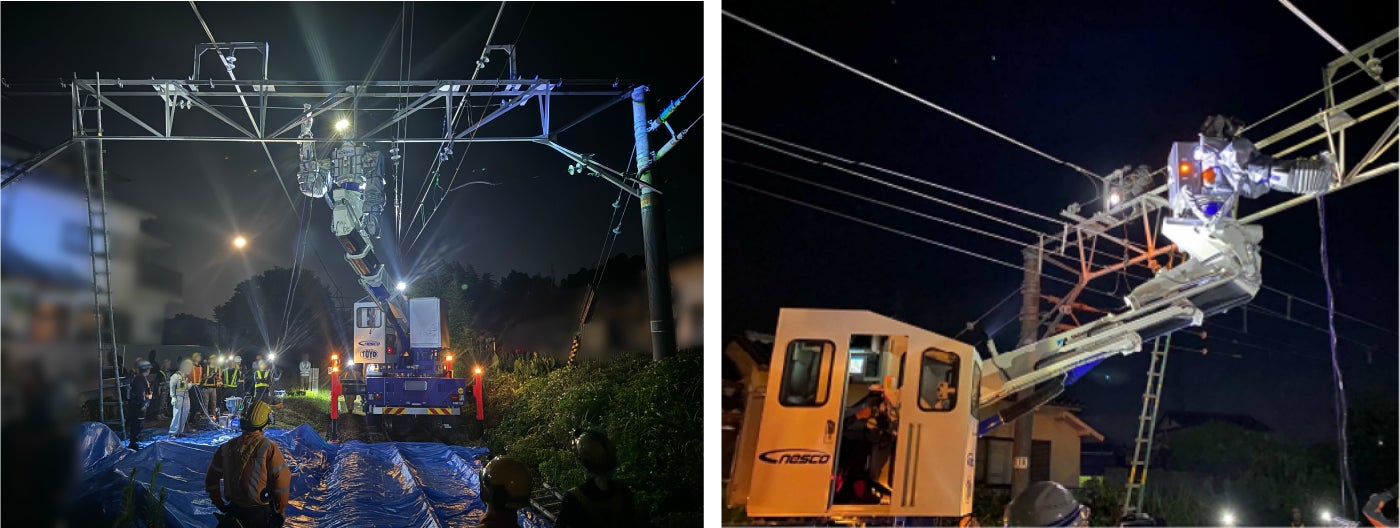 ツールを持ち替えることで多種多様な作業にも対応できます。当面の対象作業としては、架線支持物の塗装、支障樹木伐採等に使用されています。