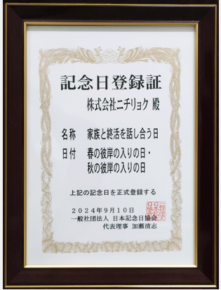 秋の彼岸の入りの日(今年は9月19日)を「家族と終活を話し合う日」に制定|記念日制定合わせ、ニチリョクが終活実施者を対象にした「全国統一終活テスト」を実施