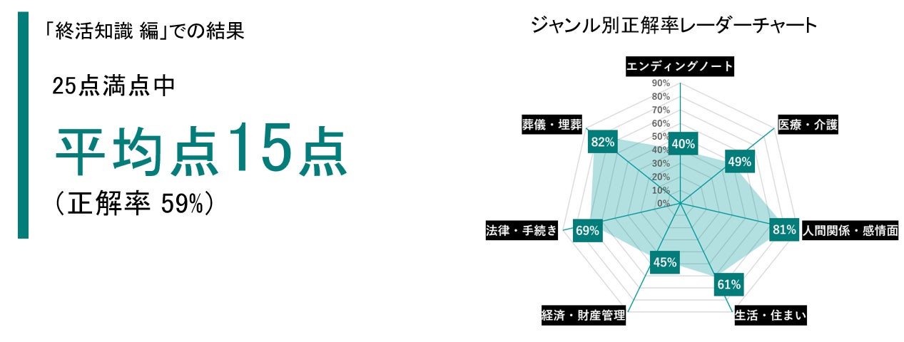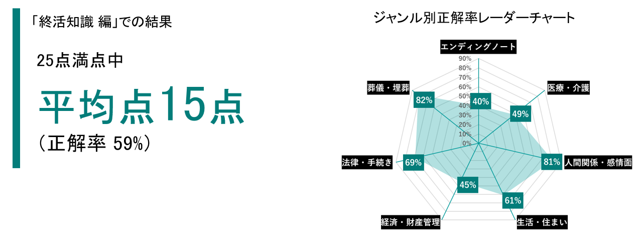 の2つの軸で調査を実施しました。この2つのテストを通じて、実際に終活を進めている方々がどのような課題に直面しているのか、また終活に関する知識と実践の間にどのようなギャップが存在するのかを浮き彫りにしました。