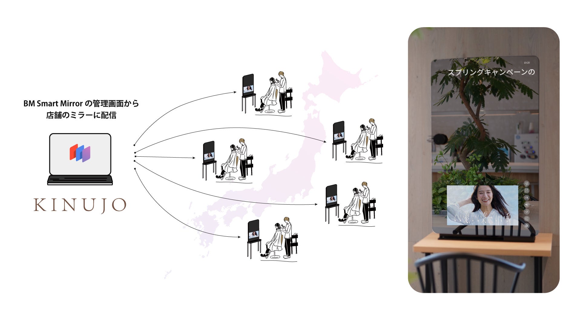 株式会社サインドと株式会社KINUJO 理美容店舗向け「BM Smart Mirror」による広告配信タイアップを開始